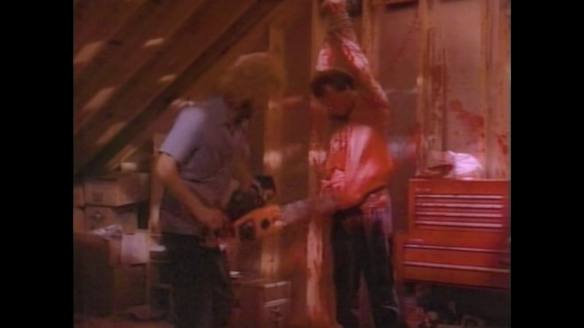 The film was later reissued on DVD in 2007 from Camp Motion Pictures with the same extras, but a weird wrinkle turned up when it hit Blu-ray in 2019 from SRS (as an actual pressed disc instead of their usual BD-R format) featuring the usual version we know and love (along with both commentaries) as well a new "director's cut" running 106 minutes, nearly 20 minutes longer than the release version. However, it's basically just lots of padding (Ritter now refers to it more accurately as a "rough cut") with various chunks of footage deleted during post-production. It's interesting to see once, but the standard cut is the one that plays a lot tighter and makes for