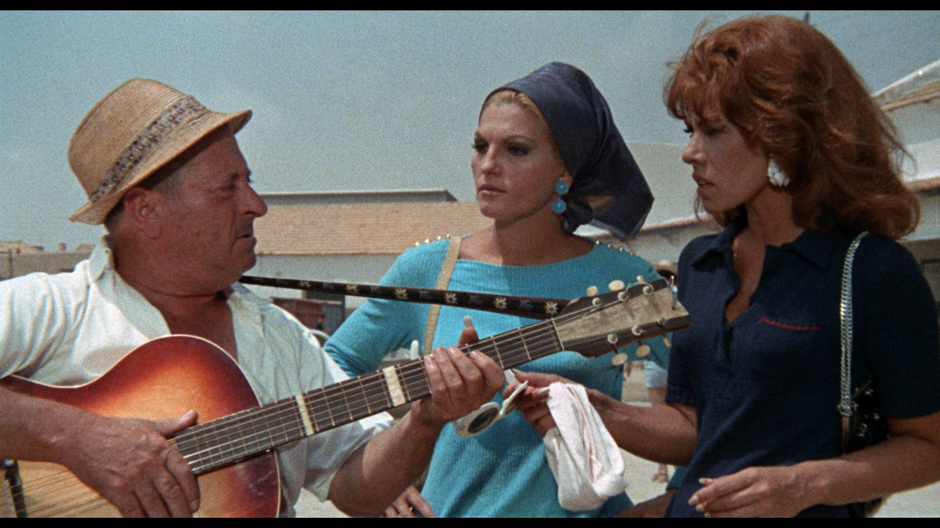 Two Undercover Angels made its first Blu-ray appearance in Germany from the much-dreaded DigiDreams whose crummy track record continued with a lackluster presentation that looked like an upconversion with a yellow tint. At least it had the English and German tracks (plus the English credits, trailer, and bios), but it wasn't worth the investment at all. In 2022, Vinegar Syndrome brought both films to Region A Blu-ray as a double-disc set with the two features housed on the first disc featuring fresh 4K scans of both from the original 35mm camera negatives. They looks gorgeous and feature much more detail than before, displaying fine film grain and intricate textures that were completely scrubbed out on video before. In a welcome correction, the night scenes have been properly color timed as well with a darker blue look versus the daylight appearance we had before. They also have more visual info than ever before, framed at 1.85:1 with a significant bit of extra info compared to the 1.66:1 DVDs. The English and German tracks are included (DTS-HD MA 2.0 mono for both), though you only get English SDH dubtitles that don't really correspond to the German track at all. The second Blu-ray