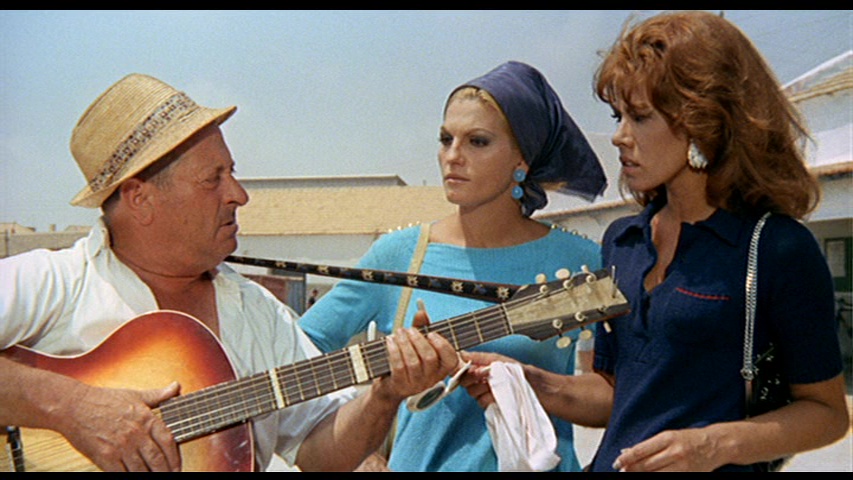 The sex and nudity quotient of both films is fairly mild compared to modern erotic thrillers, but the dizzy atmosphere of carefree sexuality that spins through both films makes them incredibly entertaining and delightful if you're in the right frame of mind. The eye-popping production design is really the star here, with a gaudy array of clothes and outrageous nightclubs providing the backdrops which hold these crazy-quilt stories together. Whether taking time for the two heroines to have a saxophone jazz duet or deglamorizing them with big glasses and clothespins on their noses, the films never take themselves too seriously and certainly never bore. The catchy music by Jerry Van Rooyen (a Franco regular) is a major asset, too.