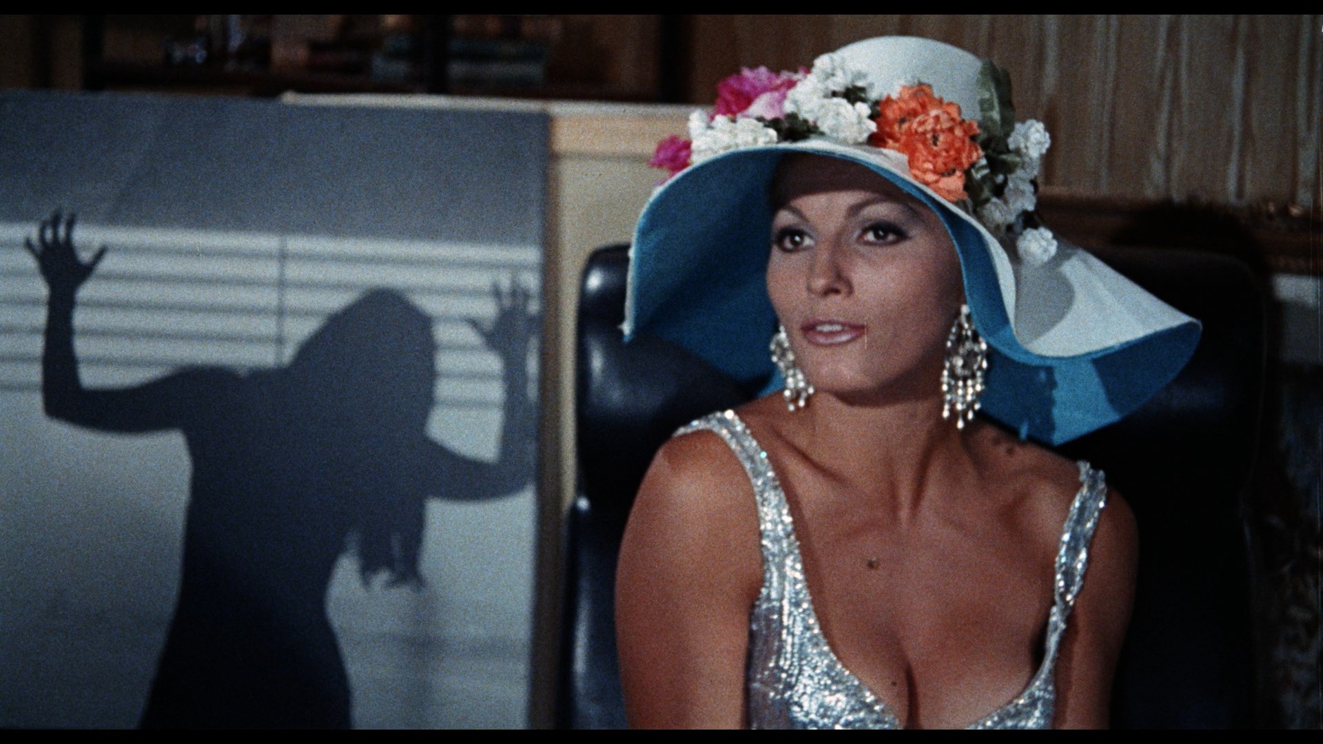 Red Lips Diaries" (46m8s), a new appraisal of the films by the always welcome Stephen Thrower who covers the influence of The Avengers, the backgrounds of the major actors, the shortcomings of the English dubs, Franco's affinity for sudden tonal shifts ("just like real life"), and lots more. A real treat to see here is the inclusion of the alternate Spanish versions of both films, sourced from tape with new English translated SDH subtitles (which means you're stuck with things like "[discordant jazz music]" on screen most of the time). It's fascinating to compare these to their more familiar versions as they run substantially longer (see running times above), dropping the nudity and more salacious elements while adding a lot more connective plot tissue, travelogue footage, and character beats. They also have markedly different title sequences and music, so it's great to have them preserved here for posterity. Also included are video trailers and extensive still galleries for both films.
