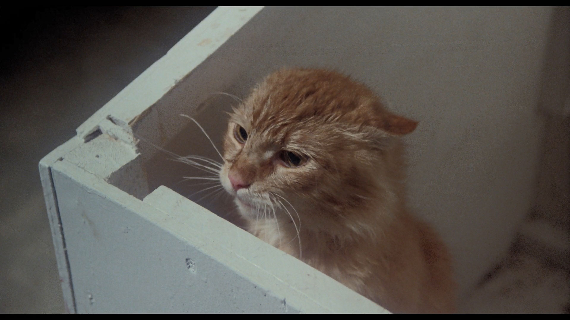 increasing difficulty of raising funding for genre films, the casting process, the addition of existing action footage from one of his prior films, the tricks of drowning an actor on camera, and of course, the treatment and happy fate of the film's feline star. Cinematographer Nicholas von Sternberg (of Dolemite and Tourist Trap fame) turns up for the new "That Darn Mutant Cat!" (9m53s), covering his memories of working with Clark, the challenges of shooting felines ("Cats don't like the water!"), his "skeptical" reaction to the script, and his mixed feelings about the final result as well as his pride (or lack thereof) in his various projects. A jerky standard def video trailer is also included with a very funny tagline at the end. A limited (2,000-unit) embossed slipcover edition designed by Earl Kessler Jr.) is also available.