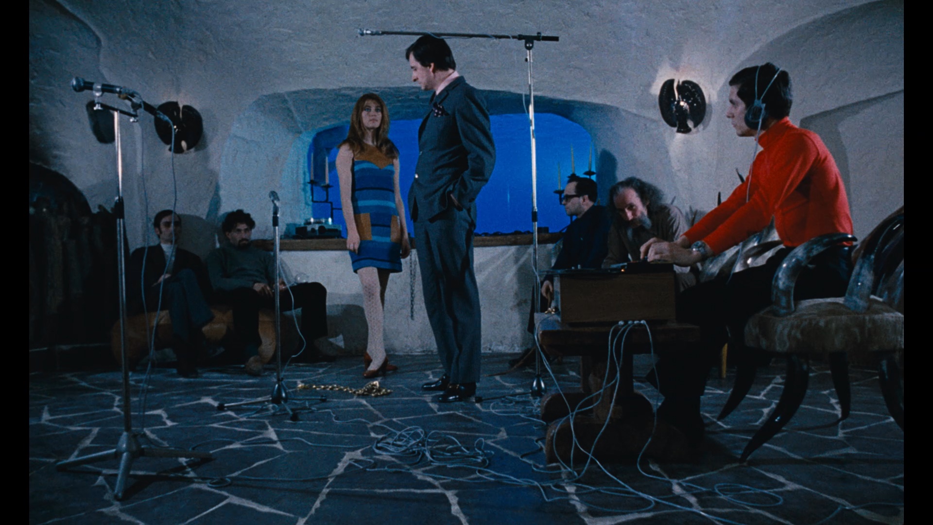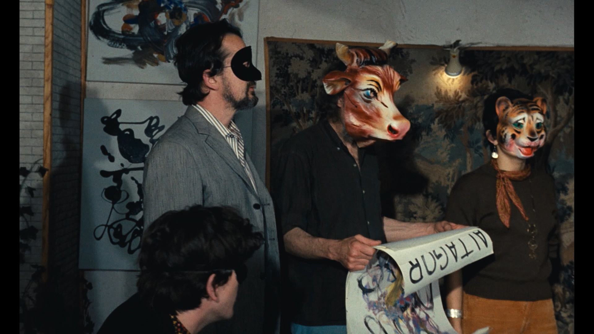 she's exploring the swinging haven called Love Club, a lesbian bath house, more nightclub performances with sunglasses, Pigalle prostitute hangouts, and other oddities before eventually crossing paths with the eccentric Altagor, a.k.a. real-life poet and avant garde fixture Vernier, who runs an underground cult involving animal masks and wild musical experimentation. Then things get even weirder thanks to a mad scientist, Dr. Villard (Sadist's Simono), who has a twisted plan for world domination through sexual mind control and robotics...