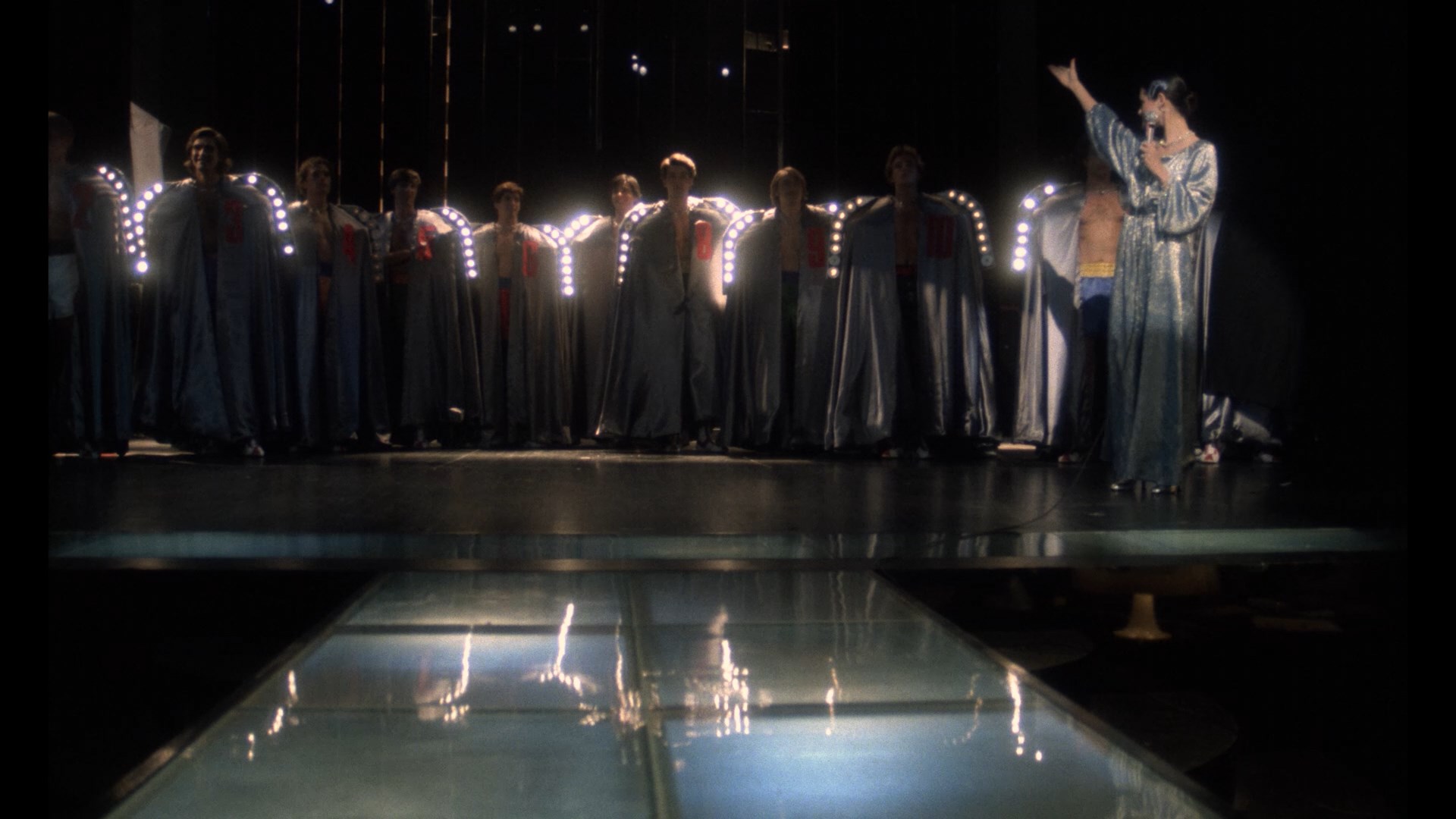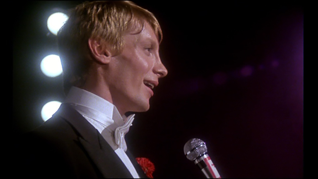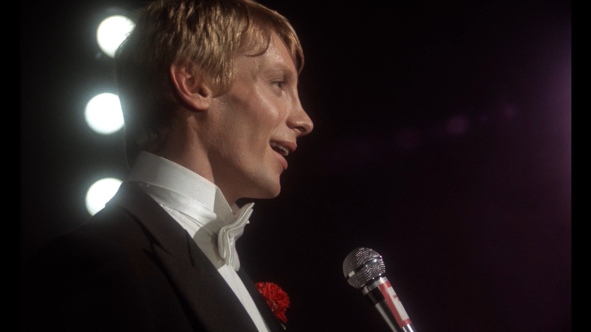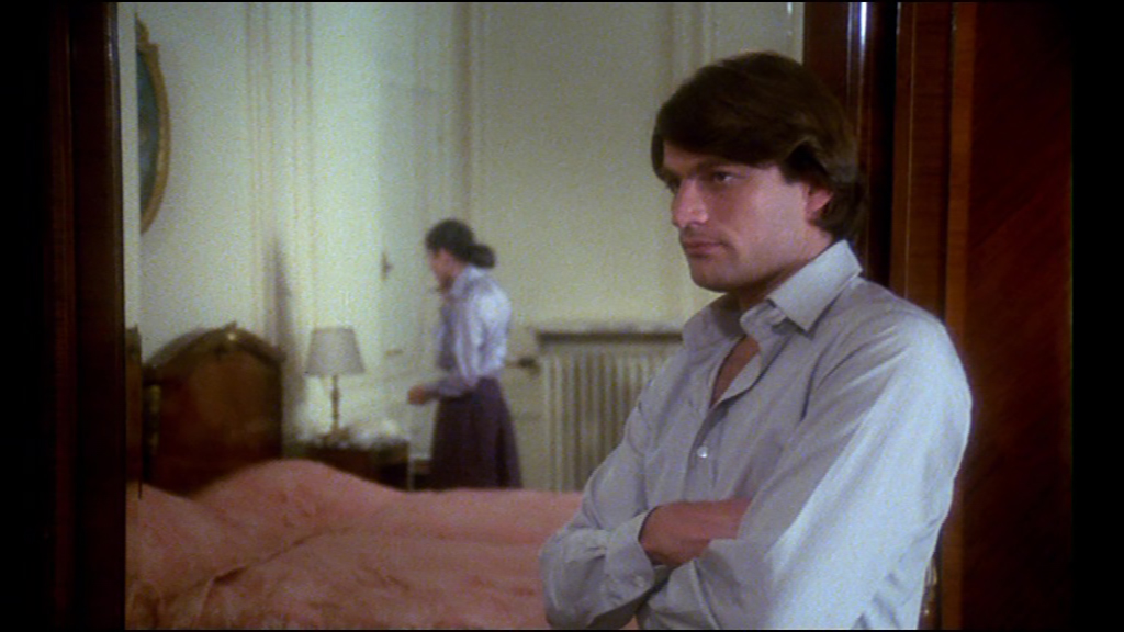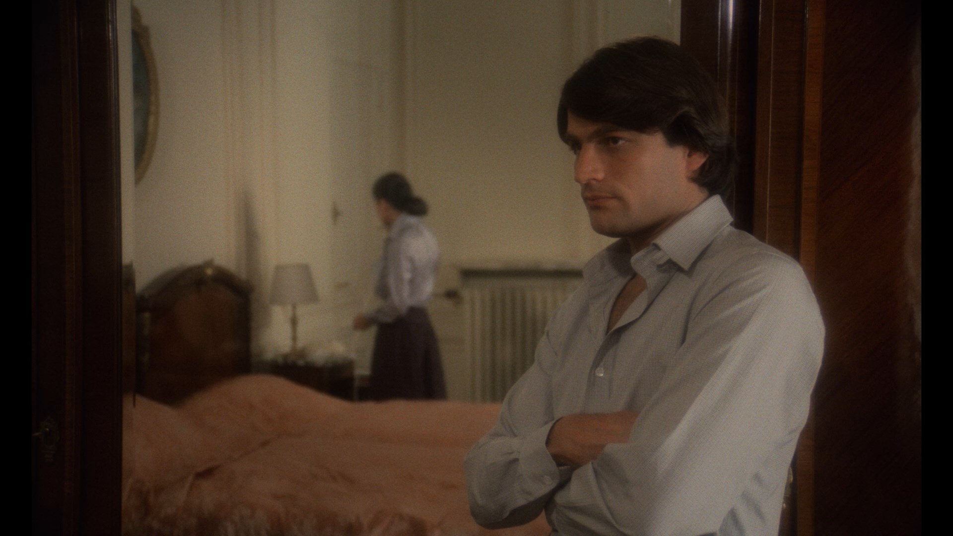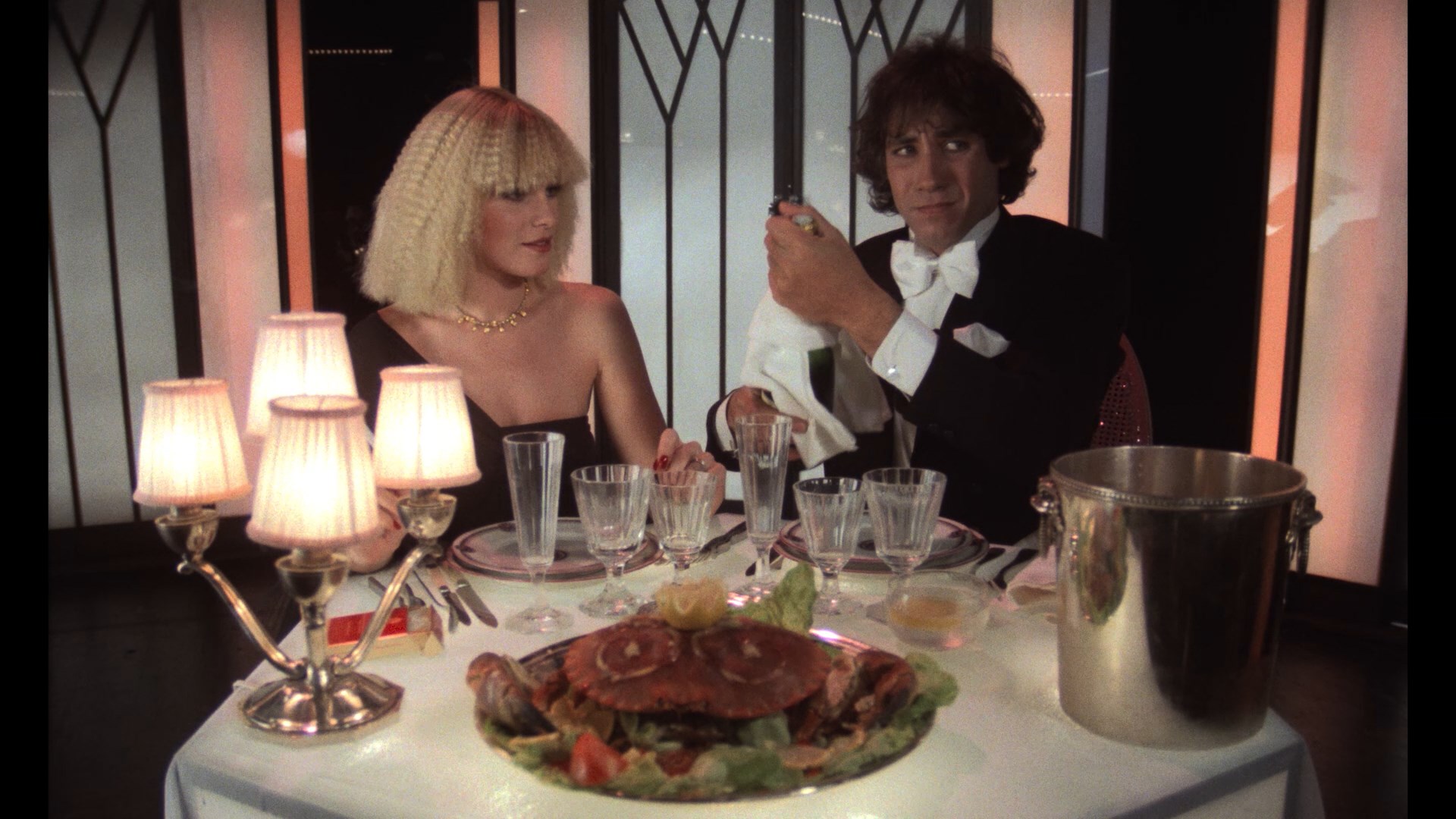 Previously available only on DVD in France without any English-friendly options, The Last Romantic Lover is a real beauty on Blu-ray from a new 4K scan of the camera negative supervised by Fraisse. Presumably the color scheme seen here is correct given that stamp of approval (the reds in this are insane); blacks are deeper and richer than the DVD, and the color scheme is largely similar except for some of the indoor TV studio scenes which now veer away from the heavy blue and purple look seen on that release. Audio options include French LPCM 2.0 mono, DTS-HD MA 5.1 surround and Dolby Digital 5.1 surround with optional
