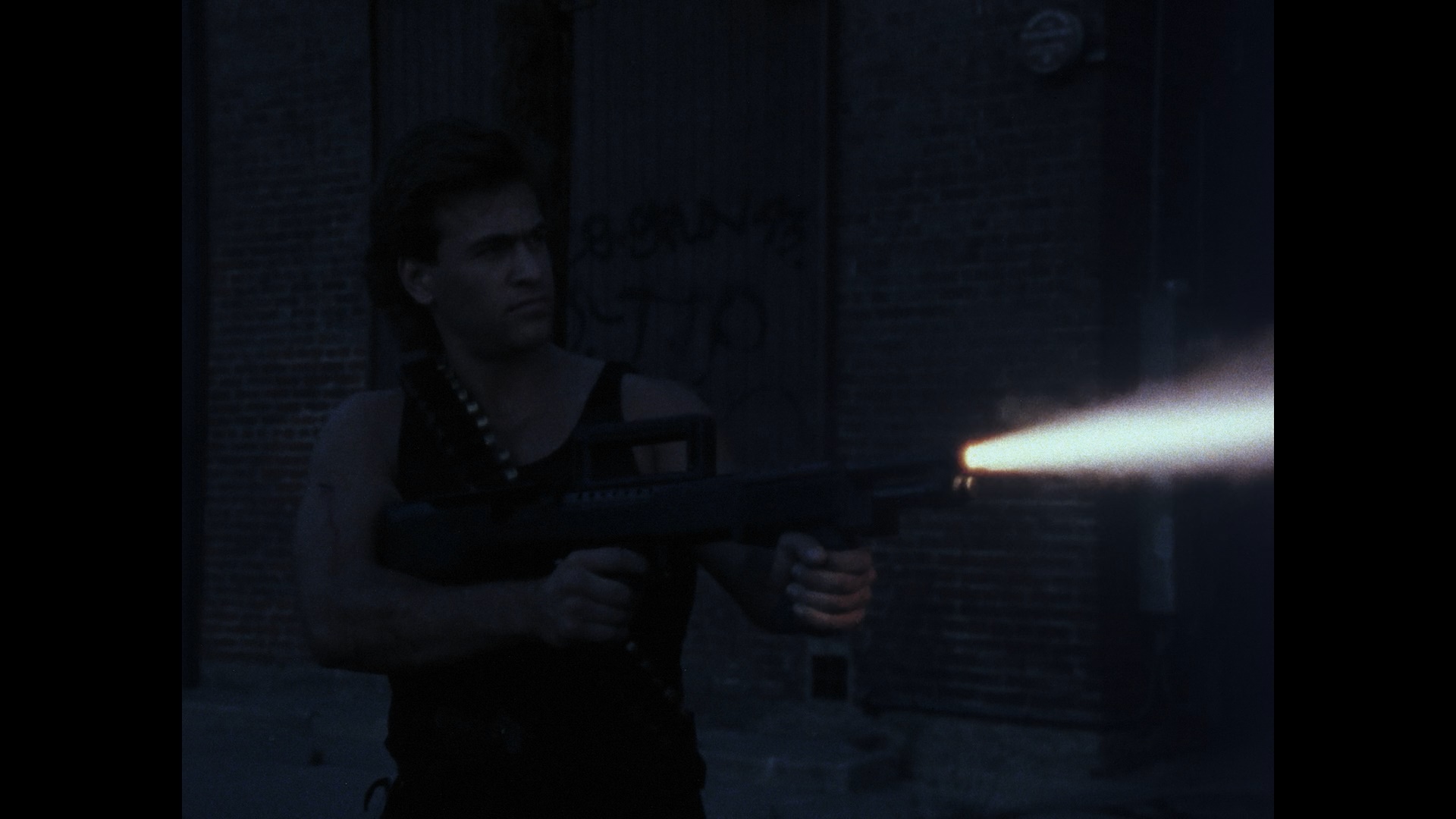 Reissued on DVD in 2014 from FlixHouse using the same '90s master, L.A. Wars has been revived in far finer form as a limited edition in the Vinegar Syndrome Archive line as a Blu-ray with the requisite insert poster. The transfer is cited as a new 2K scan and restoration from "16mm archival elements;" given that the film itself was shot in 16mm, the results are quite nice with the original grainy