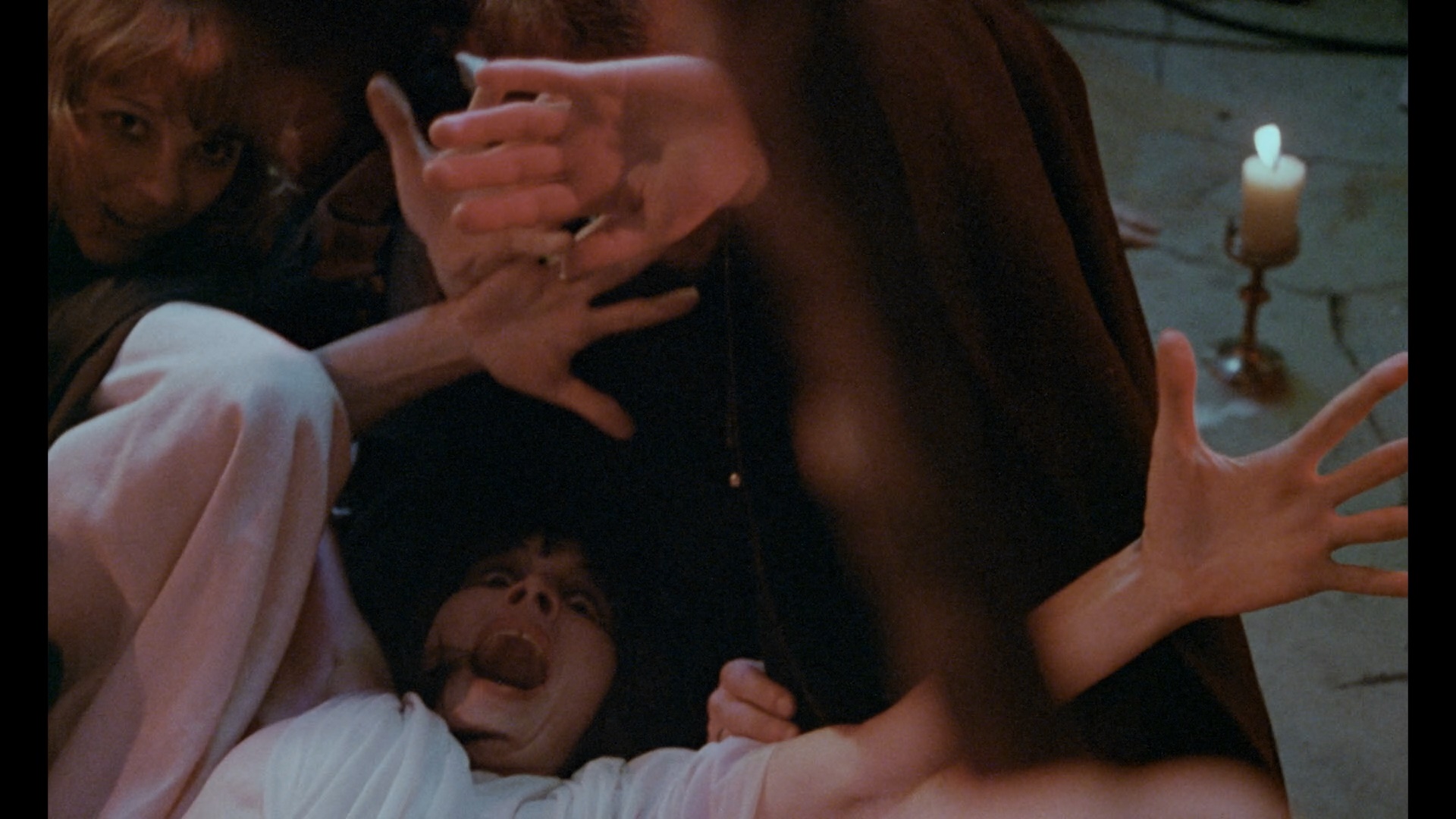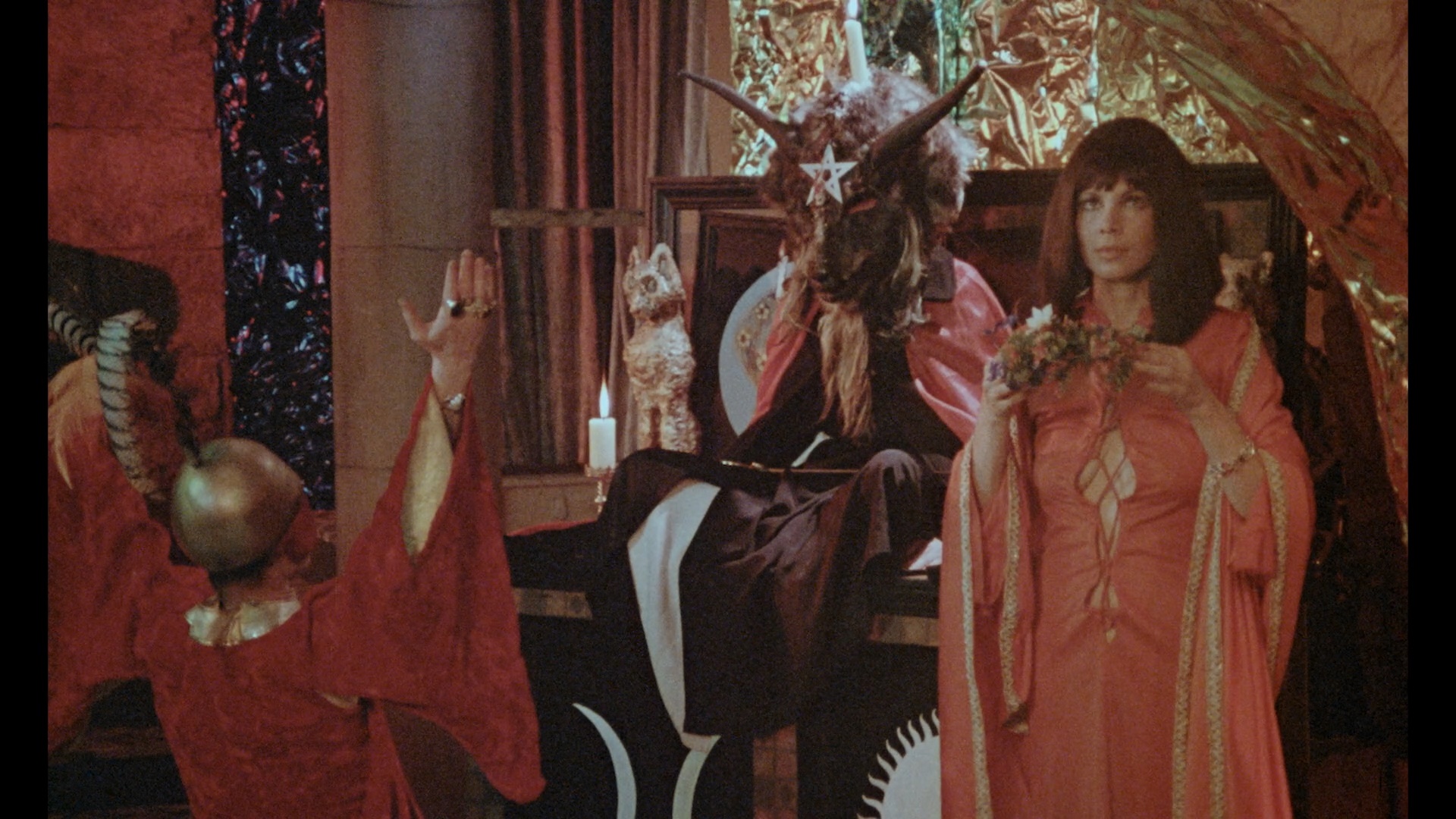 experimentation and unrepentant sleaze. Both films are in mint condition here (apart from some minor and easily overlooked fading on the second feature) and make for a great visual showcase. Legends is presented at 1.33:1 and, given the avalanche of female and male frontal nudity on display at the bottom of the frame (as well as some magical disappearing and reappearing underwear), it seems likely this was framed for matted projection somewhere around 1.66:1 or tighter -- but thank you BFI for leaving it exposed in all its glory. Secret Rites is 1.66:1 and very colorful, with lots of stylzied pink and purple lighting erupting during the ceremony sequences. The LPCM English mono tracks for both features are in excellent shape as well (with optional English SDH subtitles, which come in handy for a few muffled lines). Secret Rites also comes with an entertaining new audio commentary by Flipside founders Vic Pratt and William Fowler, authors of The Bodies Beneath, who cover Sanders, Ford, sexploitation at the time, indie British filmmaking, and amusing observations like "Look at all that tinfoil there!" during the Egyptian sequence. Also included is 1924s The Witch's Fiddle (7m3s), touted as "possibly the first student film ever made" courtesy of the Cambridge University Kinema Club, about a bewitching supernatural fiddle and its effect on an lovesick youth in the