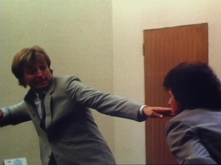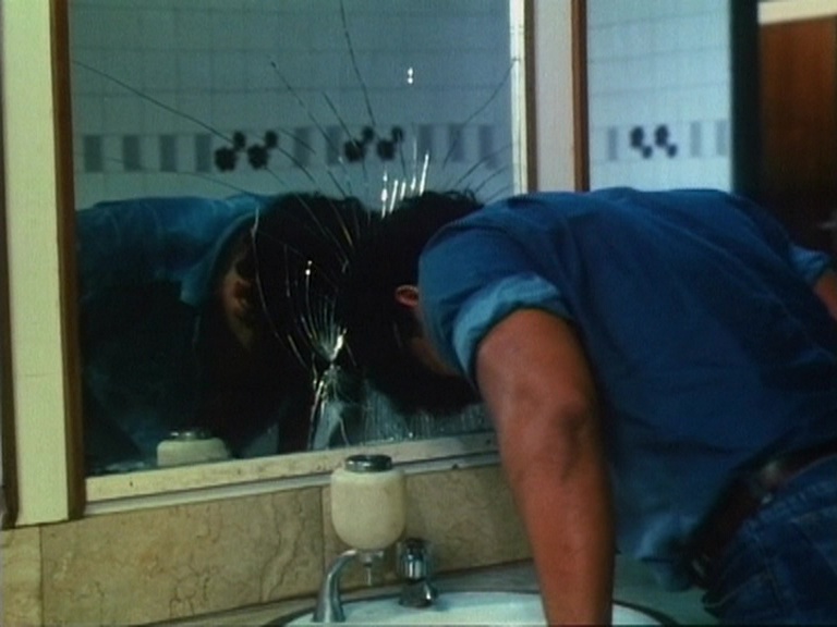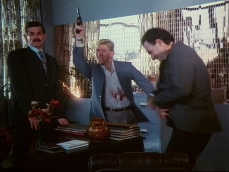 Almost indescribably entertaining, Lethal Hunter has so many highlights is almost impossible to pick a favorite. However, top acting honors may actually go to Mike Abbott, one of several Final Score alumni here and a brawny joy here as the obligatory evil henchman who gets to spit out some absurd dialogue and knock around everyone in sight. The stunt work for Mitchum is also surprisingly good, with the actor performing some extreme physical activity himself (including a pretty rough bathroom fight) and a very convincing double used for some of the more outrageous moments. What else can you say about a film that features a Jeep crashing into the top floor of an office building less than a minute into its running time?