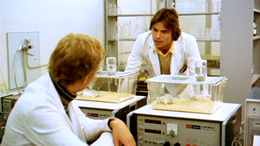Amsterdam where he hopes for an audience with the renowned Dr. Linden (Schneider), an expert in the subject of aging who is reputed to be on the edge of breaking through to discovering a hi-tech fountain of youth. Unfortunately his plans take a surreal detour when the doctor turns up hanged, his work now a baffling series of clues with no clear direction. To get closer to the truth, Land becomes intimate with the doctor’s former lover, Anna (Aumont), whose involvement with his work apparently entailed posing for kinky bondage pictures. Naturally Land and Anna decide to indulge in a little rope-play themselves, but their affair grows far more sinister when Anna appears to know a bit too much about the mysterious “Swiss man,” Nicholas Ulrich (Kinski), who holds Land’s ultimate destiny in his hands.