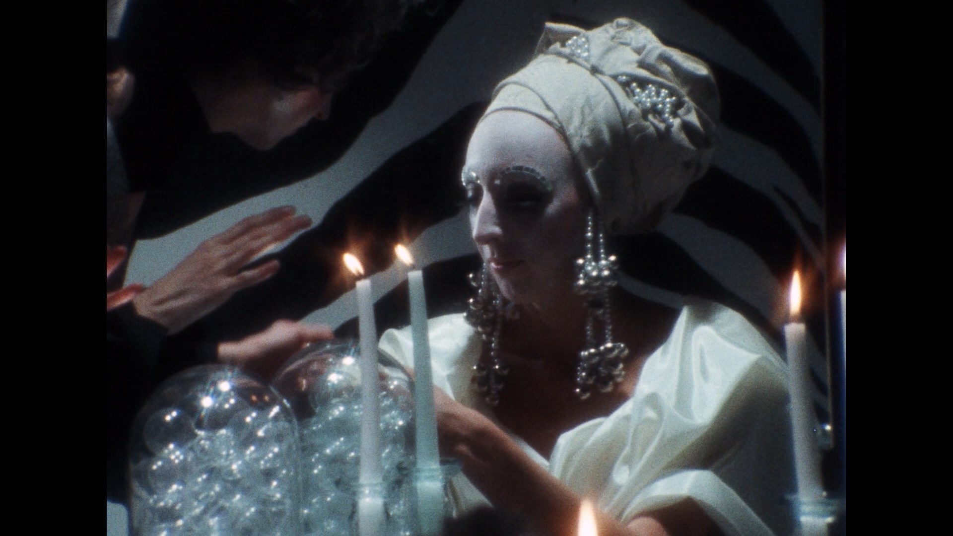 of the human spirit. Crammed with stylized lighting, nudity, glittering production design, Cockettes performances, and even a brief unsimulated (straight) sex scene, the film doesn't really have a linear storyline and operates on more of a surreal dream level. That approach is enhanced by the wild electronic soundtrack engineered by Warner Jepson with indistinct, multilingual murmuring taking the place of dialogue (necessitated by poor audio conditions and less than accomplished actors).