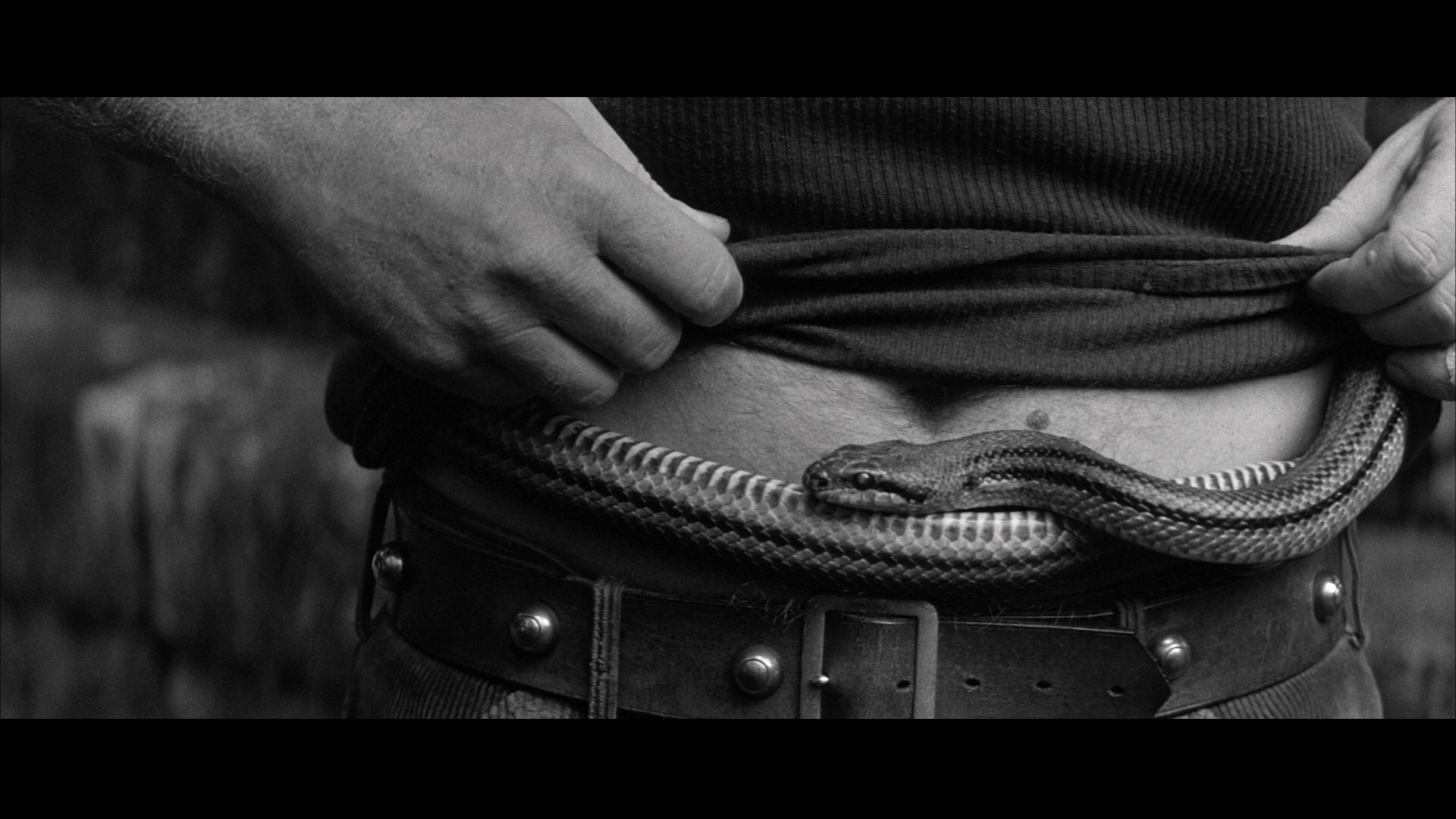 Laden with sexual symbolism (that snake!) and twisted melodrama that had many critics scoffing at the time, Mademoiselle is an undeniably gripping viewing experience that's easier to appreciate now as a forerunner to arty madwoman shockers to come like The Piano Teacher and Antichrist. As you'd expect, Moreau is superb here etching a terrifying and reprehensible character who's figured out how to use her standing in the community (not to mention the inherent tendency to doubt the statements of children) to get away with all kinds of antisocial behavior in broad daylight. However, the MVP here may actually be cinematographer David Watkin (who later won an Oscar for Out of Africa and also shot The Devils and To the Devil a Daughter), here delivering a string of gorgeous scope, black-and-white compositions that make the film a real feast for the eyes.