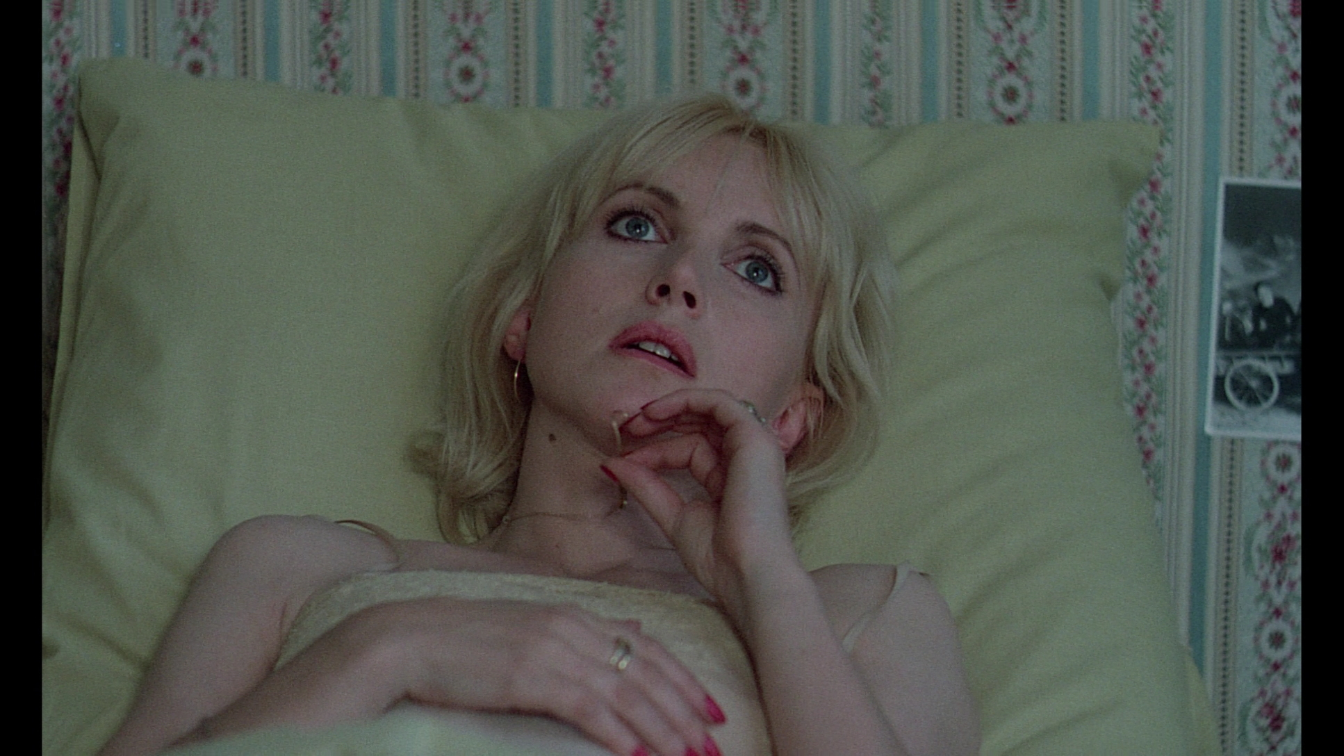 Easily one of the strangest romances ever made, Maîtresse can't really be classified as an "erotic" film in that there's no traditional sexual activity on display. However, while the basic story trajectory is fairly traditional, there's quite a bit of extreme content that rears its head at unexpected moments, such as a visit to a horse meat factory, a man's genitalia graphically pinned to a chair (years before Schram), and a bourgeois B&D party at a country home. Schroeder wisely has Ogier don a black, Louise Brooks-style wig for the film's most explicit movement in the middle of the film, allowing a real dom to convincingly serve as her stand-in for some of the more, um, sensitive moments. With its detached approach and cool, sleek visual style as counterpoints to "deviant" sexuality, the film is a fascinating precursor to David Cronenberg's Crash (with which this also shares a similarly resonant finale); both films are also darkly funny, presenting quirks of the human libido as an idiosyncrasy society just isn't quite equipped to handle yet. Schroeder nicely contrasts Ariane's austere, futuristic S&M chamber with the Parisian warmth outside, creating two wholly different but convincing