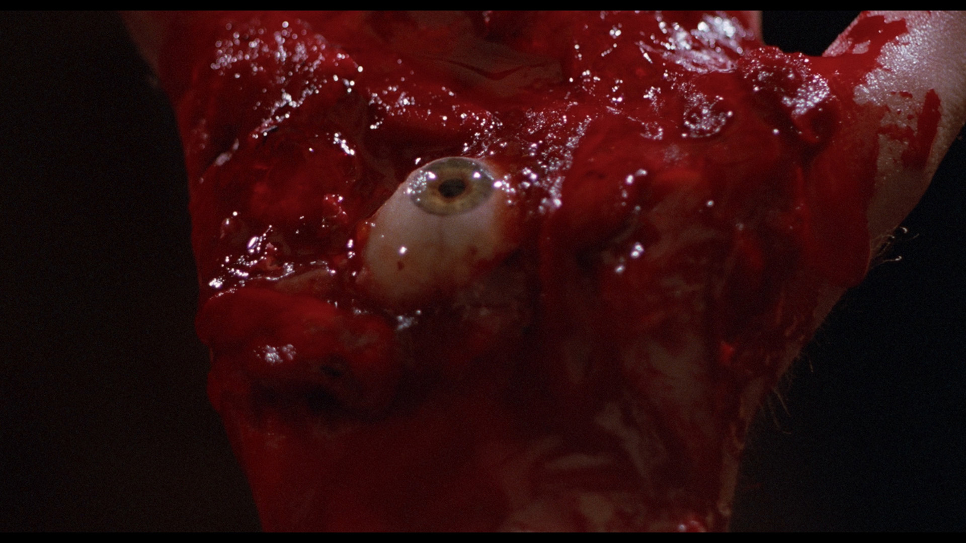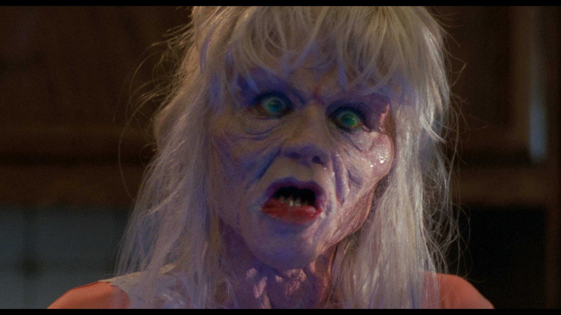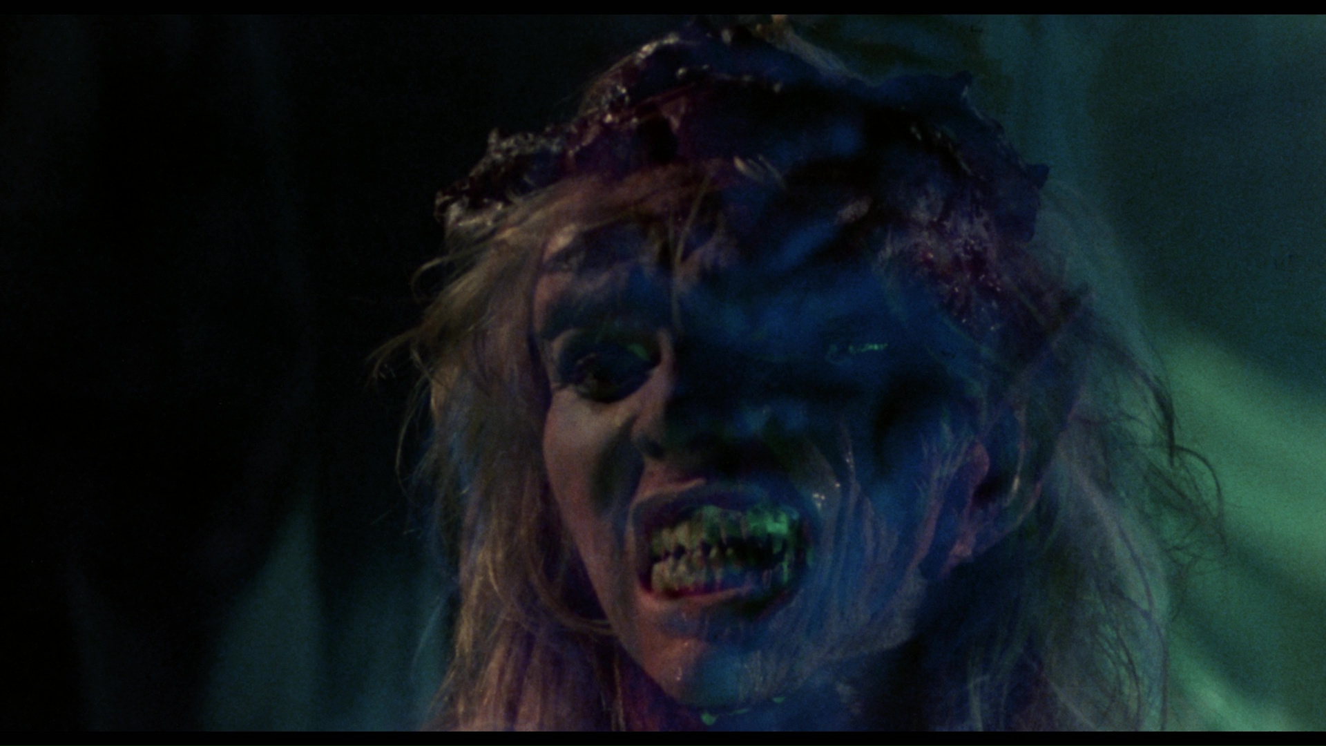 a little editorial finesse to omit a brief but graphic exploding head effect in the opening sequence. That same version made the rounds on every other DVD out there around the time except for the full frame German one. On the positive side the film can be played with an exclusive extra, a fun audio commentary with Bresee and Lee Christian that zips through her career leading up to this film, the challenges of sitting for hours going through the elaborate latex appliance process, the scrappy nature of the production mainly led by newbies to the industry, and more.