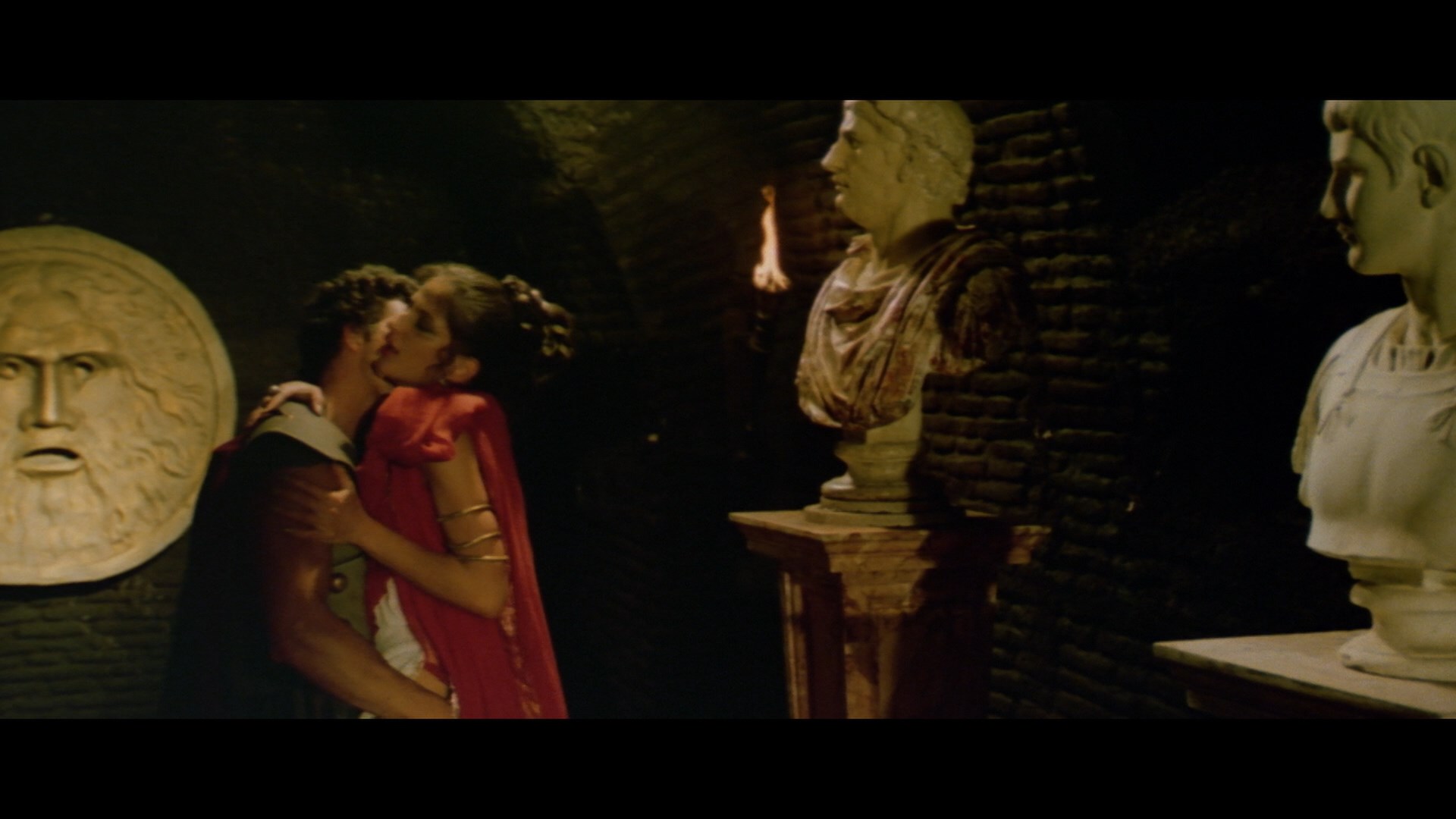 down film grain. If anyone saw this theatrically and can attest, feel free to shed more light on this one. The film uses a lot of optical effects in some spots as well which complicates things further, but colors look nice and it's best this film has looked to date on home video. The film wasn't shot with live sound (per usual Mattei standards) so the DTS-HD MA English 2.0 mono track is perfectly fine for what it is, with optional English SDH subtitles provided. Extras include the theatrical trailer and "Caligula: The Life Behind the Legend" (37m24s), a Zoom discussion with Caligula: The Corruption of Power author Anthony Barrett offering a thorough account of the known facts about the period including the significant surviving texts, the political intrigue surrounding the power dynamics at the time, the biases against Caligula, and the difficulty of being an historian putting it all together.