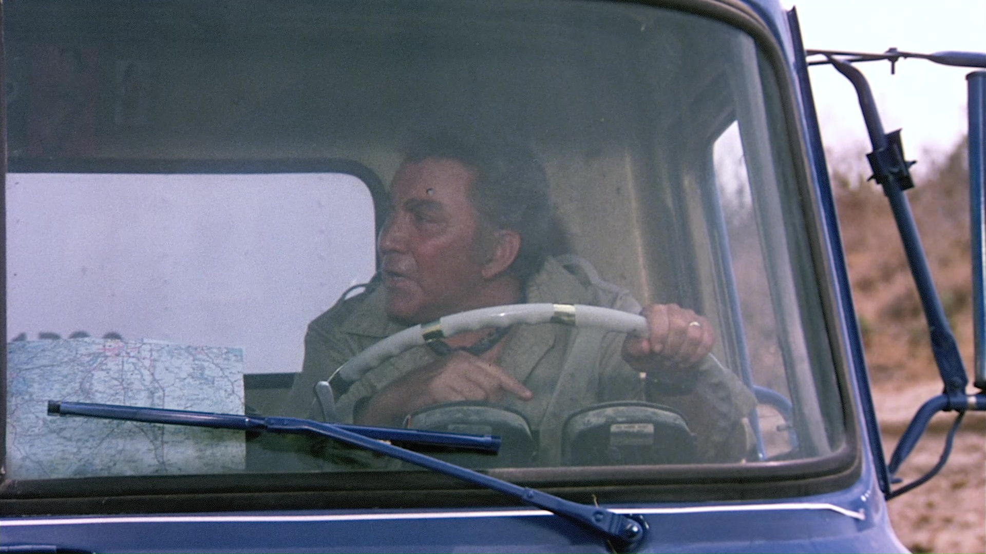 Harry (Michell) and his much younger wife Katie (Bundy), which seems to go well until Katie pulls Cooper aside to whisper that her husband is up to something shady. Over beers during a female oil wrestling match at a country and western bar, Harry fesses up that he's involved in weapons running to help rebels in a South American country called Santa Maria under the thumb of a maniacal dictator. After jumping in the oil themselves, Cooper agrees to go along for a run south of the border because, well, it's in the script, where they tangle with corrupt government officials and mercenaries on the way to a big paycheck. A huge bulldozer pushes Harry's truck off the side of a mountain, which leaves a distraught Cooper comforting his dying friend and deciding to carry on his work -- by burning Harry's killers alive and doctoring his passport to pose as one of the dead mercenaries. After picking up a blonde stranded traveler named Sydney (Van Kamp), he ends up in prison and strikes up a hard-bitten friendship with writer Bingo (Baron) who wants to turn the story of the rebellion uprising into his masterpiece.