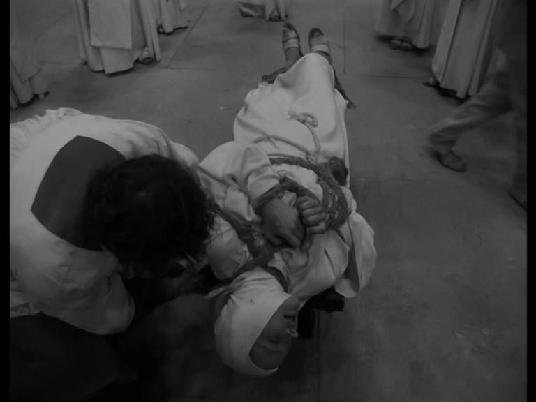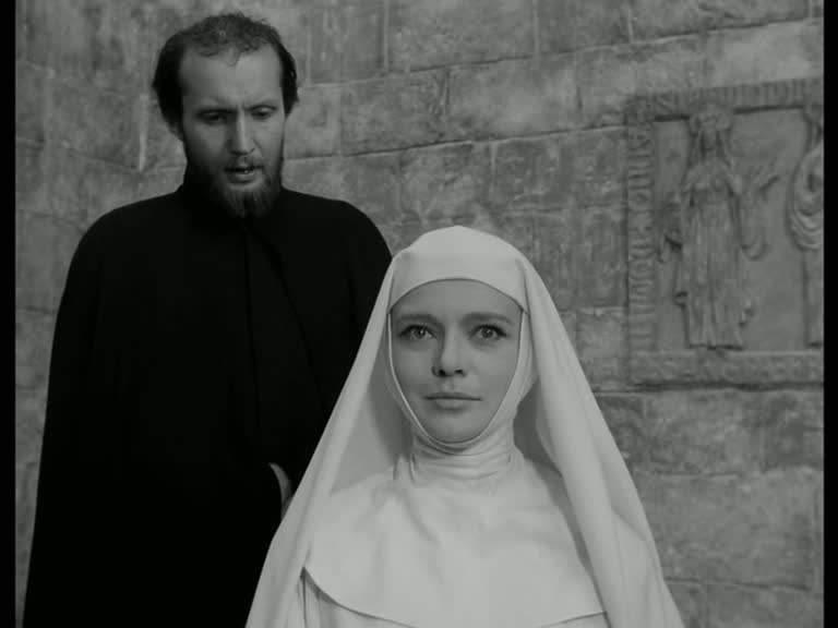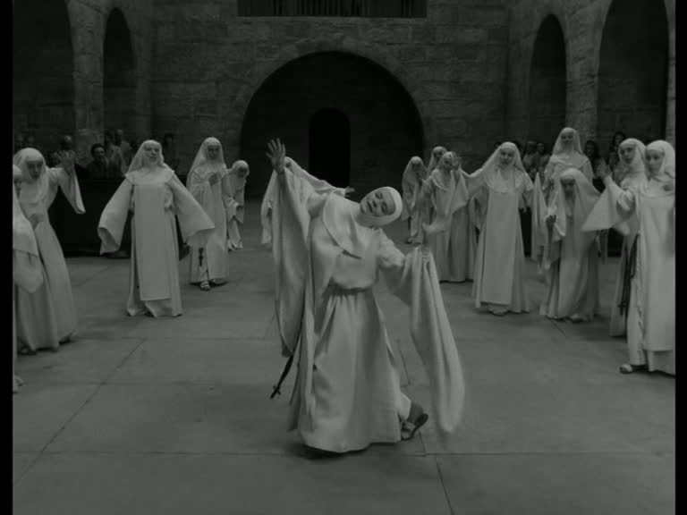 If this storyline sounds a bit familiar, well, it should; this was based on the same real-life incidents in Loudon, France which formed the basis of Ken Russell's The Devils (to which this serves as sort of an odd reverse sequel) as well as that film's literary sources like Aldous Huxley's The Devils of Loudon and the John Whiting stage play. Though this film obviously doesn't veer anywhere near the extreme blasphemy and aggressive visual schemes of Russell's film, it's fascinating how many echoes can be found between the two films, especially the sequences involving mass possession and attempted devil suppression.