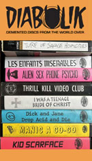 The Prichard-directed Thrill Kill Video Club (47m43s) heads back to the same video store, this time complete with a theme song to boot as we encounter a bunch of misfits at an apartment building whose forays into homicide, intentional or not, are the foundation of the title organization as they use plastic wrap and weapons to make their own video hits. This one is actually quite witty and bizarre at times, as well as the one where things start to get reflexive with an obese guy wielding a knife to eat a tub of frosting sits around watching Kid Scarface. Dick and Jane Drop Acid and Die (54m17s) is... well... a parody of scare films with a narrator warning us about the dangers of LSD, while some bizarre Manhattan denizens act up around town and music ranging from thrash to warbling folk blasts on the soundtrack. It's different. I Was a Teenage Bride of