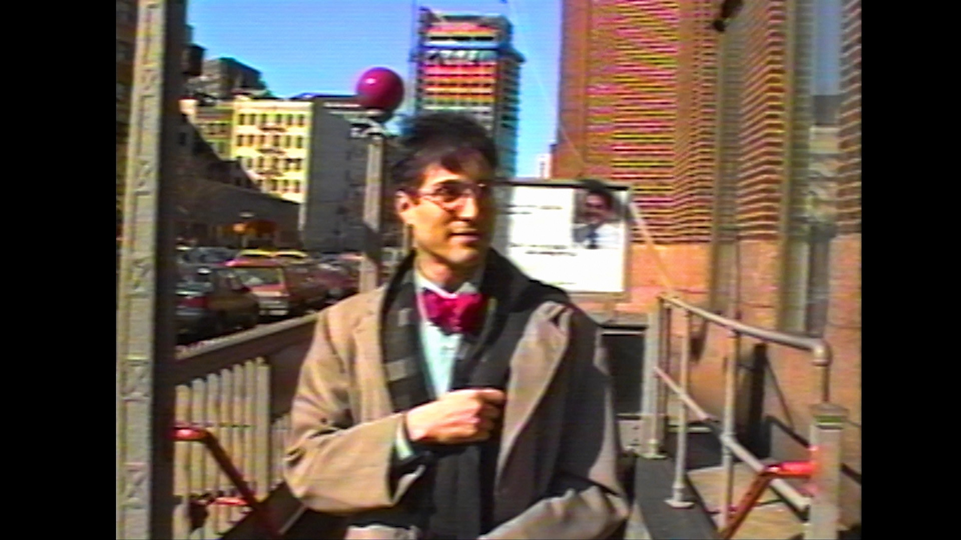 Shot on video (mostly) in various apartments and clubs, as well as on the streets without permits, these are true DIY oddities that become more endearing as you start seeing the same names popping up in different capacities from one title to the next (with actors taking turns as cinematographers, composers, and so on). First up is the silly, sleazy, rockabilly-flavored mob yarn Kid Scarface (57m44s), obviously shot in the winter with Mitler as a slick-haired hustler whom we first see throwing a fit when he's turned down for a job at a video store. From there he rubs shoulders with the local crime scene and gets involved with a femme fatale, though mostly it's a slice-of-life character piece about the absurd situation of job struggling in the big city. It also