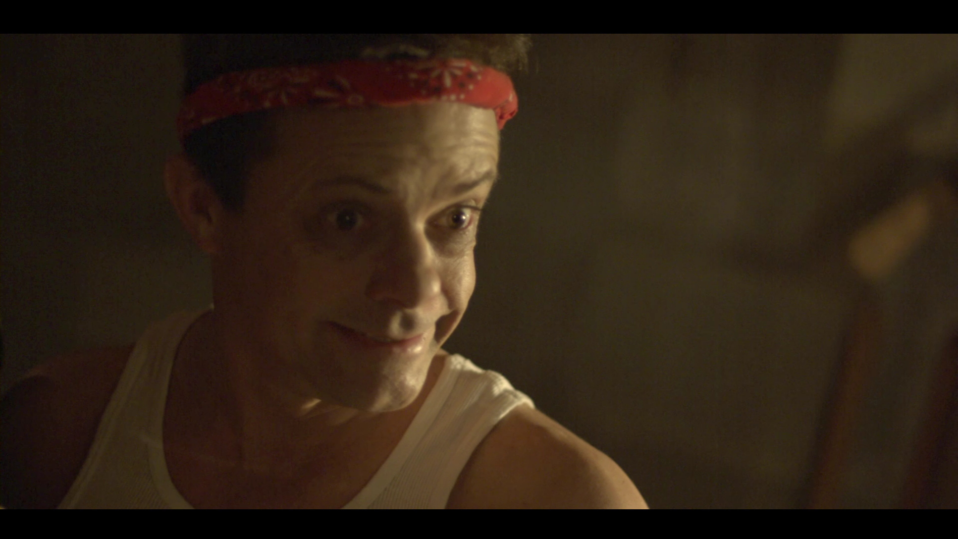 A film with its heart in the right place, Mr. Hush has a potentially crackerjack premise with a clueless man tormenting over a period of years by an evil force whose motives only become clear in gradual stages. It also wisely doesn't try to avoid any hamminess inherent in the story, with Young (a low-budget horror vet familiar from fare like Sea of Dust and Green Monster) and especially the always entertaining Geoffreys (in full Evil Ed mode here and wearing a red bandana for some reason) chomping, gnashing, and swallowing every shred of scenery around them. Unfortunately the part of Holland requires Loree (an actor and stunt man who played Michael Myers in Halloween: Resurrection) to emote wildly at regular intervals, which results in plenty of unintentional comedy. While a normal man would probably go into catatonic shock or a violent rage after each of Hush's antics, Loree inst The pacing and tone changes are bizarre as well, with the first ten minutes fully devoted to showing the aforementioned happy family being very, very happy and expressing their happiness to each other in the happiest way possible. It's not the most gripping way to start a horror film, unfortunately. First-time director David Lee Madison pulls off some of the disorienting story shifts well enough and even gets an irrational nightmare vibe going at times, but the decision to shoot some scenes with a jerky handheld camera tends to cre Released on both Blu-Ray and DVD by Horizon Films with distribution by Kino Lorber, Mr. Hush comes stacked with extras (not to mention cover art very, very similar to a certain Halloween cult favorite) along with an HD transfer in the first option that's about as good as possible given the modest budget and technical limitations. The decision to shoot it mostly in Pennsylvania actually pays off with some atmospheric exterior shots at times, something the film could have emphasized even more. The audio is presented in both DTS-HD 5.1 and a 2.0 mix, both of which are again limited by the source. Werba's score gets most of the surround action, while the dialogue ranges from okay to sometimes distorted whenever someone's screaming and yelling (which happens fairly frequently). Both Madison and Young team up for a commentary that covers the usual ground, ranging from shooting locations to how much they loved the rest of the cast to the unusual emotional grace notes they were trying to hit in some of the quieter scenes. However, the funniest extra by far is the "Special Introduction," a video piece in a kitchen with Madison and Clerks' Brian O'Halloran (whose presence only makes sense if you watch all the way through the end credits of the film itself) bantering as they ostensibly welcome viewers to the film. A blooper reel is also included along with a Visitor music video for the end credits theme song (really!), plus the original promotional trailer and subsequent ones created for theatrical and DVD use.