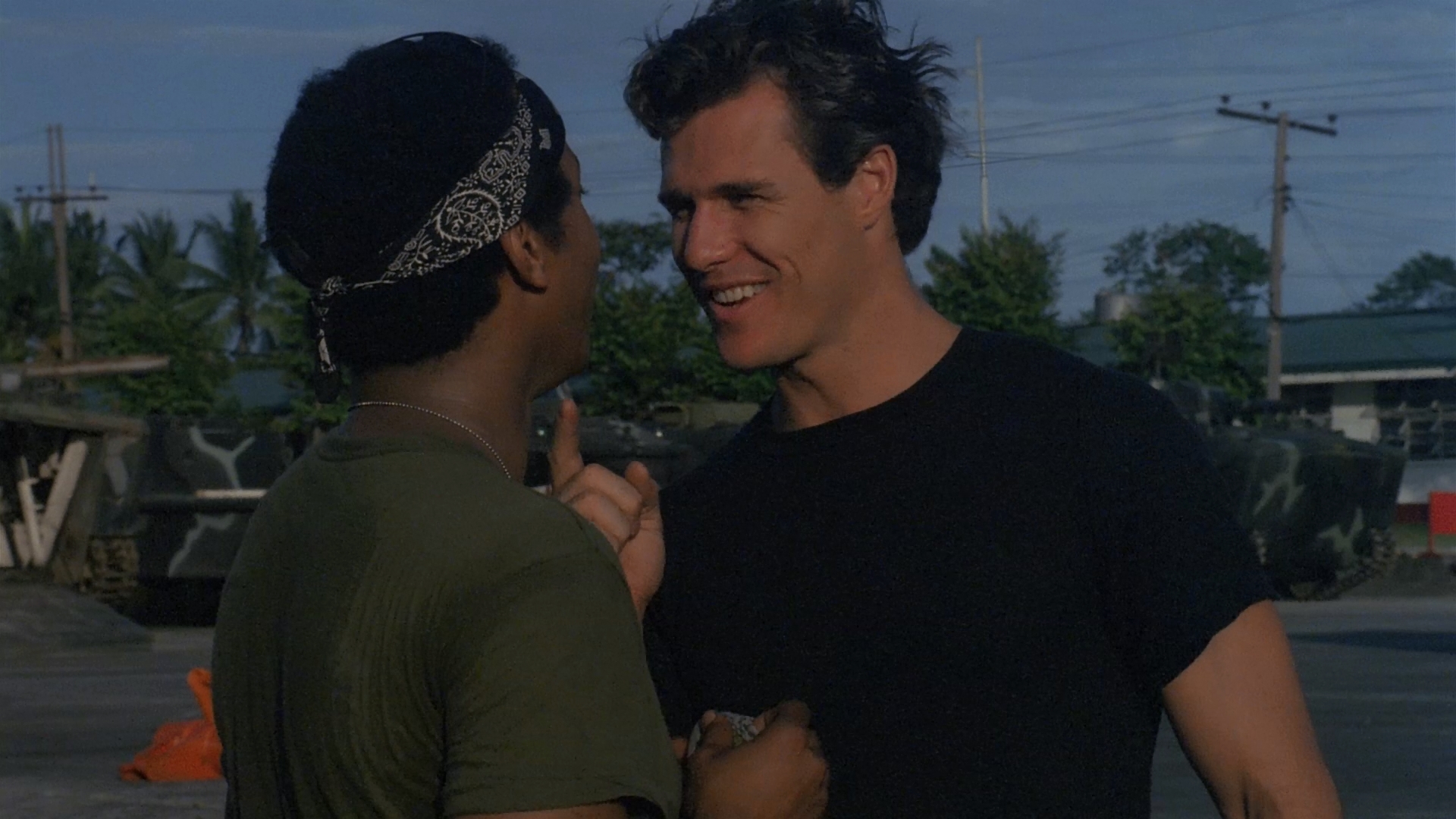 way over what we've had before. If you've seen the label's other Corman-owned Santiago titles you'll have some idea of what to expect as it still looks like pretty mediocre film stock, but the colors are great, the detail in the greenery is nicely delivered, and it's a nice consolation considering the fact this was barely given any kind of a legitimate theatrical release. It's also the uncut 93-minute version versus the more common 82-minute one prepared by Corman with abbreviated credits and a truncated opening. The DTS-HD MA English stereo audio sounds fine as well given that the only thing that'll test your speakers is the occasional explosion and that nutty theme song at the half-hour mark. The main extra here is a new 21-minute interview with Wells, who chats about getting into a "fun" three-picture deal with Santiago in Manila, his friendship with the filmmaker, and a number of his other film credits including a bizarre digression about his pigeonholing as a gay leather villain after two of his more famous '80s roles. Even stranger is a brief intro to the film with Wells and the label's banana man, which won't be spoiled here. Regular hostess Katarina Leigh Waters hosts the disc with an optional intro and closing segments, riding a chopper and showing off a skintight black outfit as she rattles off the significant credits and trivia items for all of the major players. Also included are the theatrical trailer and bonus ones for The Devastator, Cocaine Wars, The Jigsaw Murders, Nightfall, and Equalizer 2000.