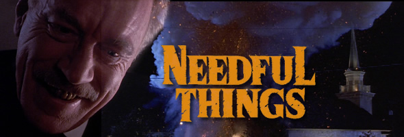 The story of Needful Things manages to pay homage to Ray Bradbury's Something Wicked This Way Comes (and even Friday the 13th: The Series if you want to stretch it) while fitting the template of King's subgenre of stories about towns radically transformed by an invasive supernatural force (a la 'Salem's Lot and The Tommyknockers). Here the interloper is Leland Gaunt (an incredibly effective Von Sydow), a mysterious stranger from Akron, Ohio who sets up a shop called Needful Things that caters to the customer's fondest desire. His first sale is an autographed Mickey Mantle card to a young boy who offers him 95 cents and one favor, a trick to be pulled on one of his neighbors at a later date. Soon Gaunt is exerting a manipulative and eventually deadly influence on the town, focusing in particular on the vulnerable and