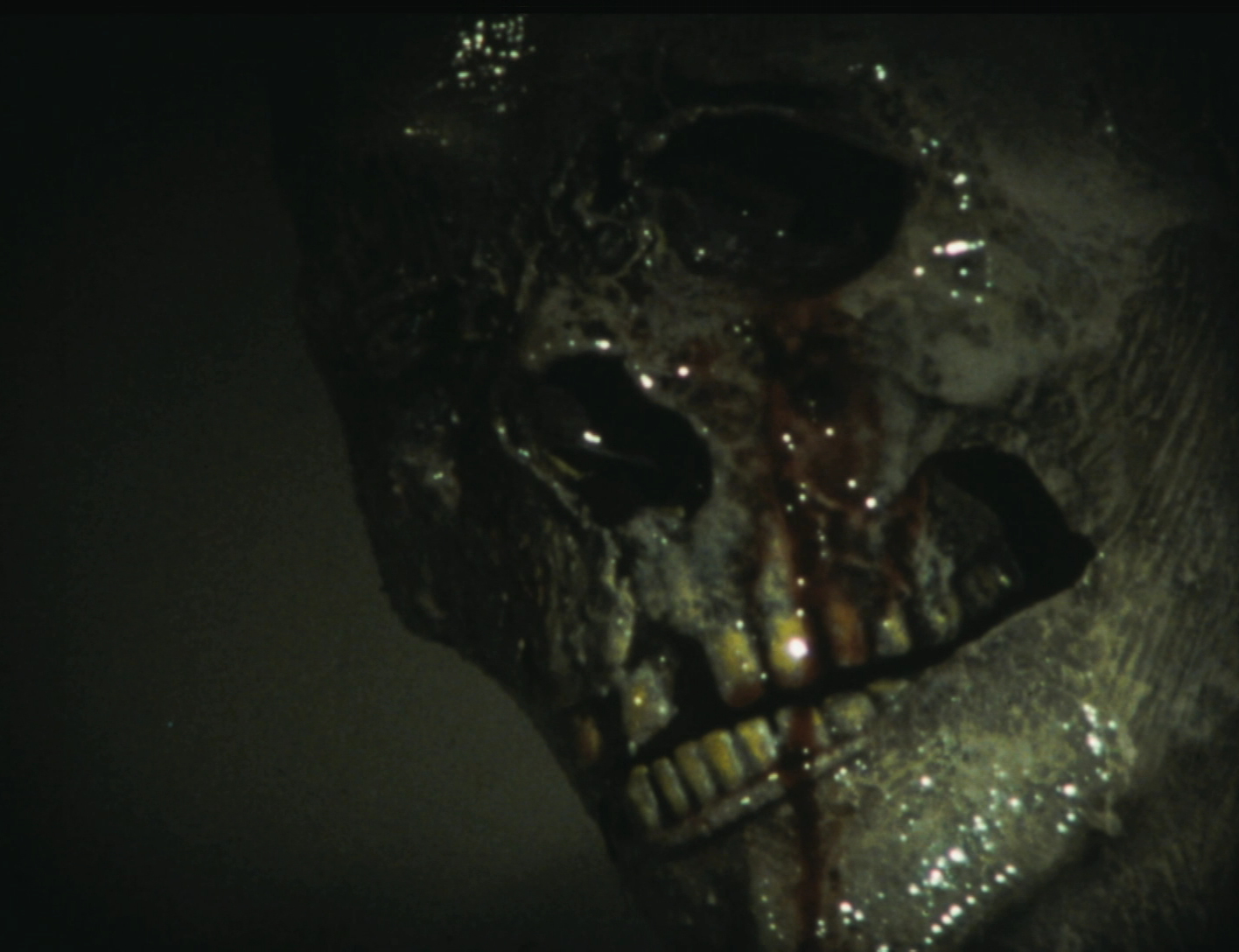When Barrel quietly folded a few years later, the DVD went out of circulation and Nekromantik started commanding ridiculous amounts of money for those who could still track down a copy. In 2014, Cult Epics finally got it back in circulation -- on Blu-ray, no less, with two viewing options. First up is a fresh HD scan of the original Super 8 negative, which looks about as good as you could imagine for a scruffy 1987 film shot in that format. There's plenty of inherent softness simply due to the film itself, and there's a fair bit of debris throughout, but it's safe to say this is about as crisp and clean as it's ever going to look without a ridiculously expensive restoration. There's also a "new grindhouse HD version" from the sole existing 35mm print, which is prefaced with Buttgereit's comment at Beyond Fest that he prefers this one in a way since it makes the film look "dirtier." Stains, scratches, and other damage swarm over the entire film (presented at the correct 1.33:1 aspect ratio just like the prior option), but it's definitely closer to the presentation horror fans of the' 80s grew to know and love. The main option features Dolby Digital 2.0 stereo and 5.1 options along with that great commentary track from the prior release, while the grindhouse 35mm transfer is standard 2.0.