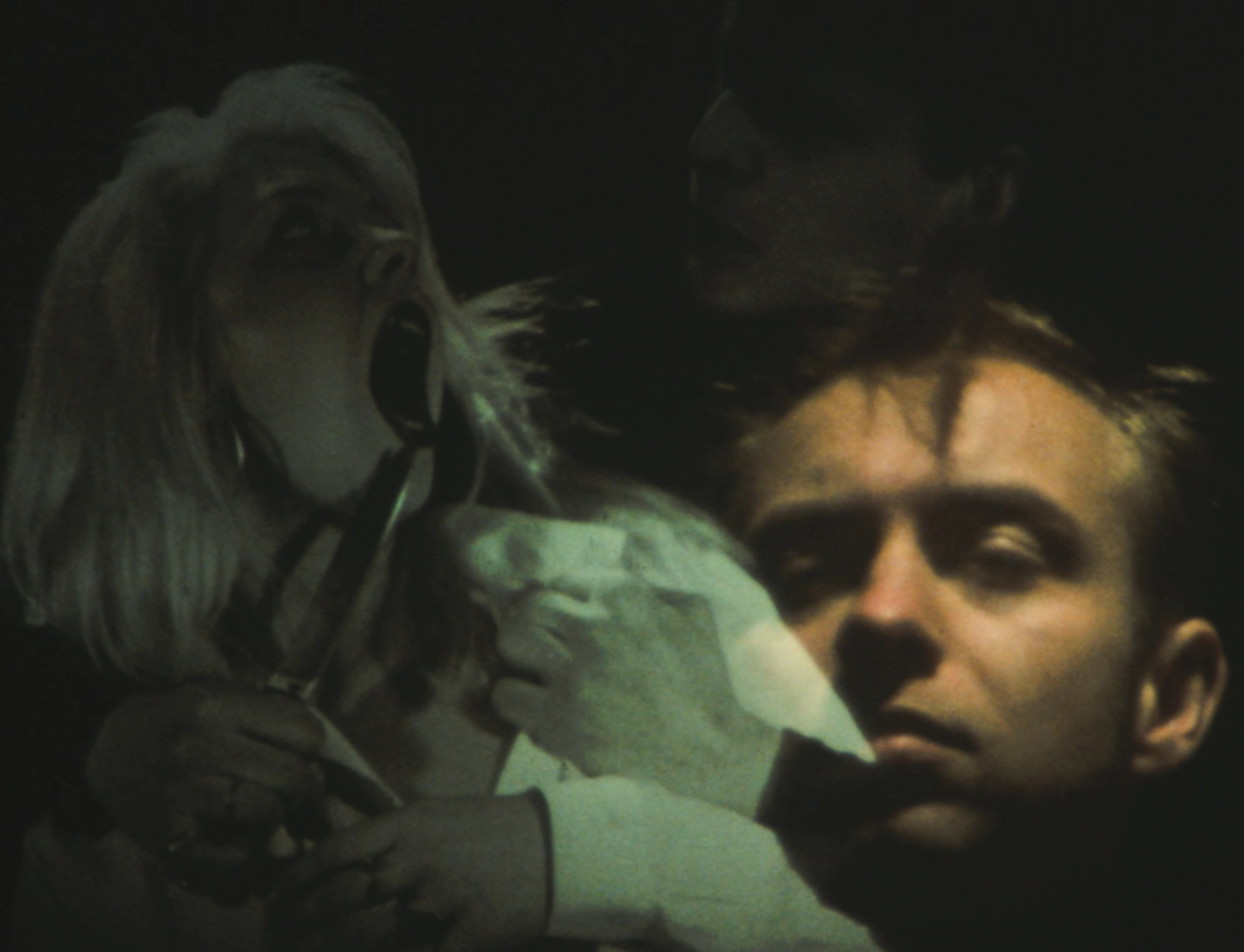 As for the rest of the extras, the original 12-minute making of is ported over here while Buttgereit's entire 2013 Q&A from Beyond Fest is presented here, running 40 minutes. Again he's witty and entertaining as he takes a look back at the market for horror films at the time, the circulation of a handful of 16mm prints to get the word out about the film, talking his friends into making it, and the pitfalls of trying to track down a real necrophile. There's also a different 9-minute vintage featurette with Buttgereit sitting at an editing table for 9 minutes speaking in German (with subs) about the circumstances behind the film while various scenes and outtakes unspool next to him; most humorous is the demonstration of the censorship imposed on the film in Japan, which understandably involved lots of pixelation. Of course, the big draw here is the 1985 Buttgereit short film, Hot Love, which runs 29 minutes and makes its legit English-language home video debut. There's also an optional audio commentary by Buttgereit for this outrageous story, which in many respects lays the narrative groundwork for Nekromantik as it follows the tortured love life of a meek guy (Lorenz) who meets and falls in love with a pretty girl (Marion Koob-Liebing) only to catch her in the sack with another guy (Buttgereit). After a few sweet montages, he catches her in the sack with another guy (Buttgereit) and gets into a violent altercation that ultimately leads to something even worse. Then the girl turns out to be pregnant, and things start to get... even crazier. Complete with a crazed central performance by Lorenz and a rhapsodic piano score, this is really the perfect companion for the main event on this disc. Also included is a brief Hot Love featurette (3 and a half minutes) with random attendees at a theatrical screening speaking in oddly overdubbed German and English about how much they loved it, including a few familiar faces from future Buttgereit projects. Lorenz even gets up on the stage to do a solo guitar number, too. The disc wraps up with the complete original soundtrack (with no chapter stops, oddly enough) and trailers for Nekromantik, Nekromantik 2, Schramm, Hot Love, and Der Tödesking, which is still way overdue for a digital American release. Included in the packaging is a pair of postcards, the graphic Beyond Fest artwork and a shot of Beatrice M. in her bathtub, perfect for sending to your mother.