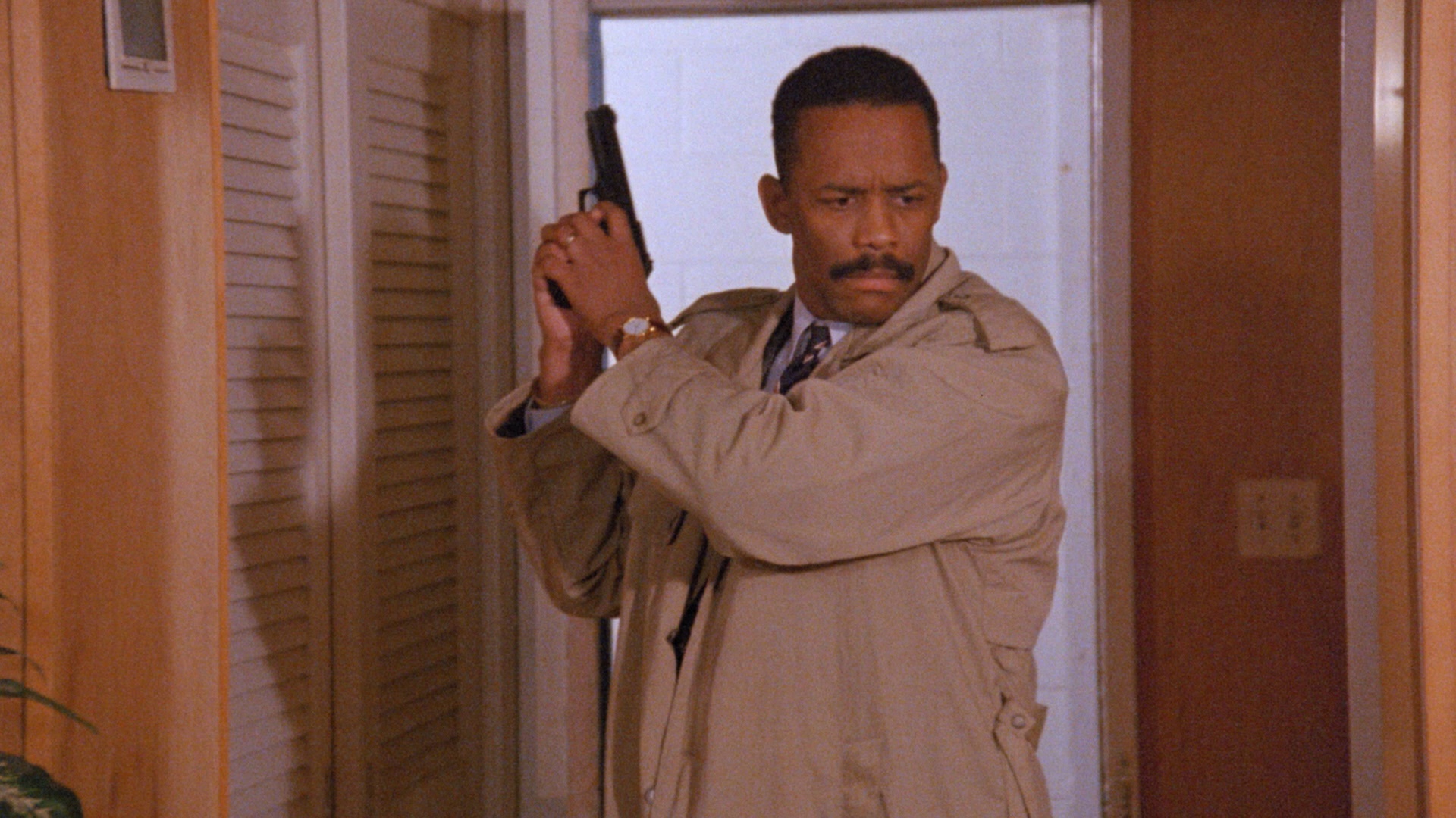 A maniac wearing a creepy rubber mask and sharp clawed gloves is sexually assaulting and murdering women in the town of Virginia Beach, and he's developed an obsession with Melanie Beck (Silent Night, Deadly Night's Buckman), who's estranged from her dismissed cop husband and taking care of their daughter, Clarissa (Sardot). It's bad enough that the creep terrorizes her over the phone, but then he breaks in and... well, it's left unclear for a while, but when she wakes up in the hospital, she can't remember anything about her Night Killerattacker, or even her own family. Her neighbor Sherman (Foster) Night Killernow has a facial scar after intervening and is taking care of her daughter while she recovers, but that's just the start of her nightmare. While in the ladies' room, she pulls a gun on a mystery man (Hooten) who intrudes on her and forces him to strip down to a tiny blue Speedo at gunpoint, after which he runs into a public lobby screaming "I was just molested in the little boy's room!" They meet up again at the beach minutes later where a suicidal Melanie tries to overdose on pills, but he intervenes and ends up holding her captive in a motel room. Meanwhile the world's most irate and incompetent cop (Davis) and an even more inept shrink (Lively) deal with reporters and try to sort of but not really lead an investigation into the whereabouts of Melanie, who's still the only one who can identify the killer -- if she can only remember his face.