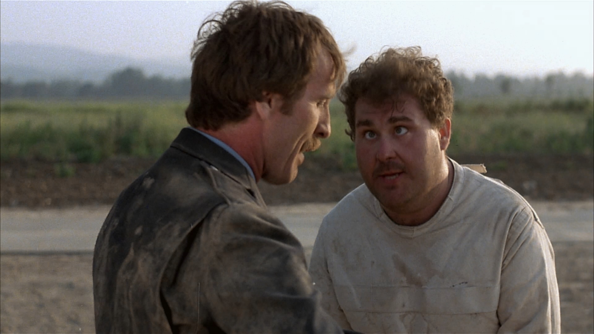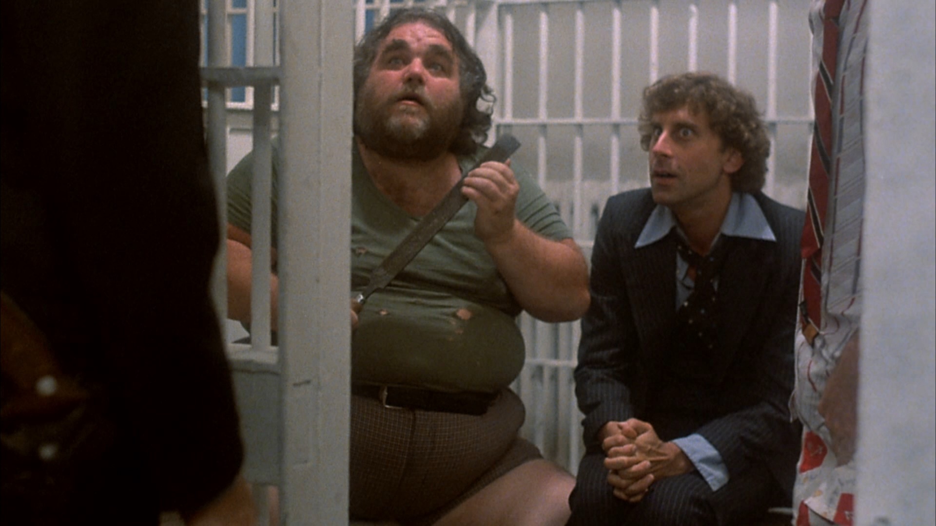 Show's Riley), while his day job is filled with goofballs including his new partner, Kent (Paulsen), potential romantic partner Sue Perman (Blair), and his boss, Captain Lewis (Barty), who's not only foul tempered but prone to extreme flatulence. Mostly it's a collection of childish gags involving cockfighting, sperm banks, blackface, sexual assault, homosexuality, and other random topics, all handled with the sensitivity you'd expect. Along the way you also get random appearances by a young Andrew Dice Clay, Kitten Natividad, Sydney Lassick, Langston's TV co-star Jaye P. Morgan as his showbiz manager, and a completely baffling extended cameo by Pat Morita (who earned an Oscar nomination for the same year's The Karate Kid, incredibly enough) as a dumpster-dropped rape victim talking with a dubbed little girl's voice. In short, it's the kind of film designed to be watched with as many beers and as little brain power as possible.