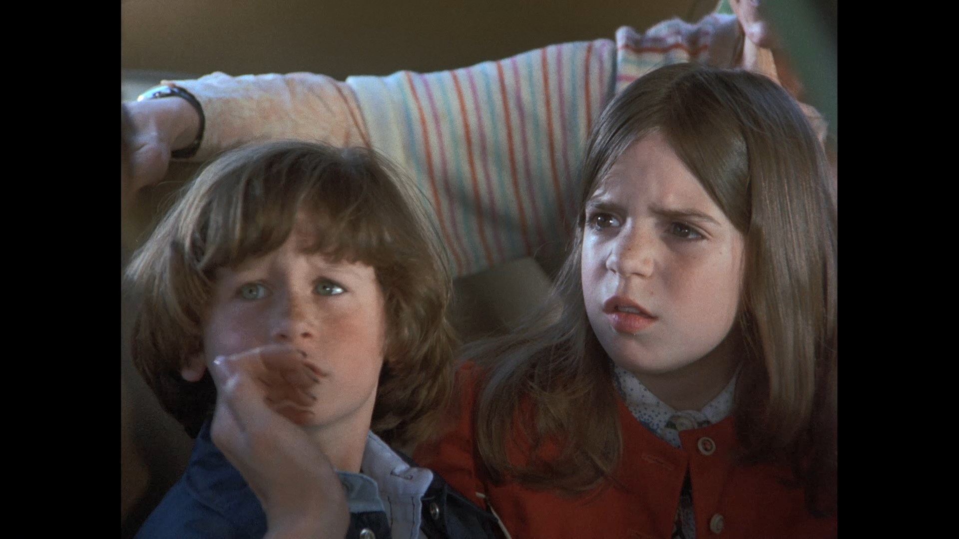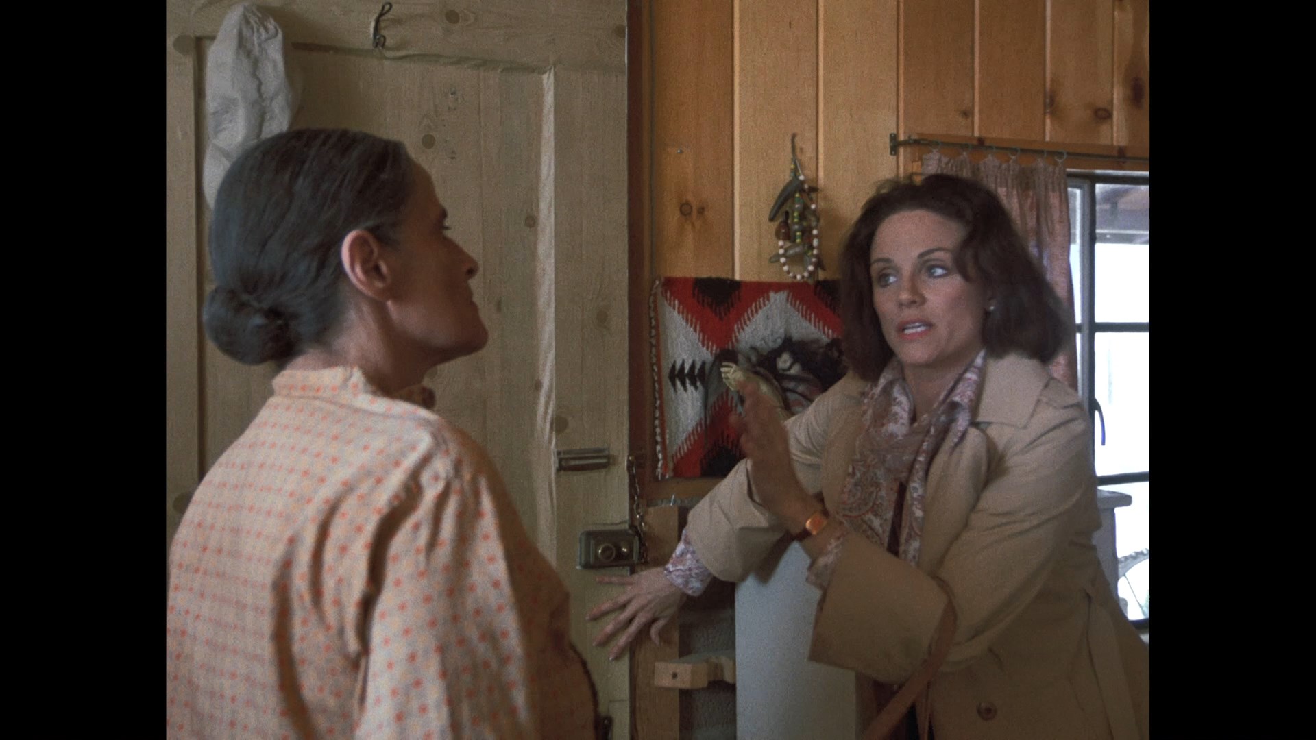 cut is also missing some material from the TV cut including a nifty little shock jump, so it was nice to have that original broadcast version back in circulation when ownership shifted over to MGM in the '00s. A fresh HD scan started making the rounds including a brief appearance on Netflix and occasional airings on the MGM HD cable channel, but a home video release didn't come along until Scorpion Releasing issued it on Blu-ray and DVD distributed by Kino Lorber. As expected, this is the original 73-minute TV version, still looking quite nice here and much better than we got when it used to turn up over the air. Film grain looks natural, the dark scenes are crystal clear, and apart from some minor white specks here and there, the elements have been kept in good shape; that goes for the DTS-HD MA 2.0 English mono track as well, which comes with English SDH subtitles. A new audio commentary by the reliable team of Amanda Reyes and Daniel Budnik, who manage to load the compact running time with lots of info including stats about the ratings, the differences between the two versions, the interesting subtexts about Vietnam vets and gender stereotypes, and the credentials of the personnel including music composer Fred Steiner (Perry Mason). Also included are bonus trailers for The Chosen (a.k.a. Holocaust 2000), The Psychic, Rollerball, Trackdown, Slow Dancing in the Big City, and Last Rites.