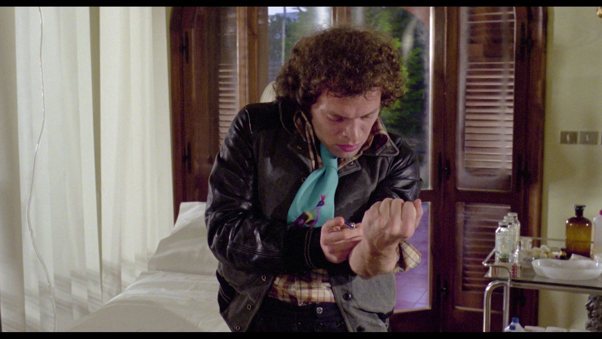 Also in 2025, the film jumped tracks over to Severin Films for a UHD and Blu-ray edition, first available directly from the label with a soundtrack CD and a limited slipcover and wrap key art design by Eric Lee. As you'd expect, the UHD is the best option with the HDR10 bringing out some extra oomph in that wild blue and rose lighting, as well as an appreciate uptick in detail with much more natural film grain. As usual the main titles look lesser than the rest of the film, but after the