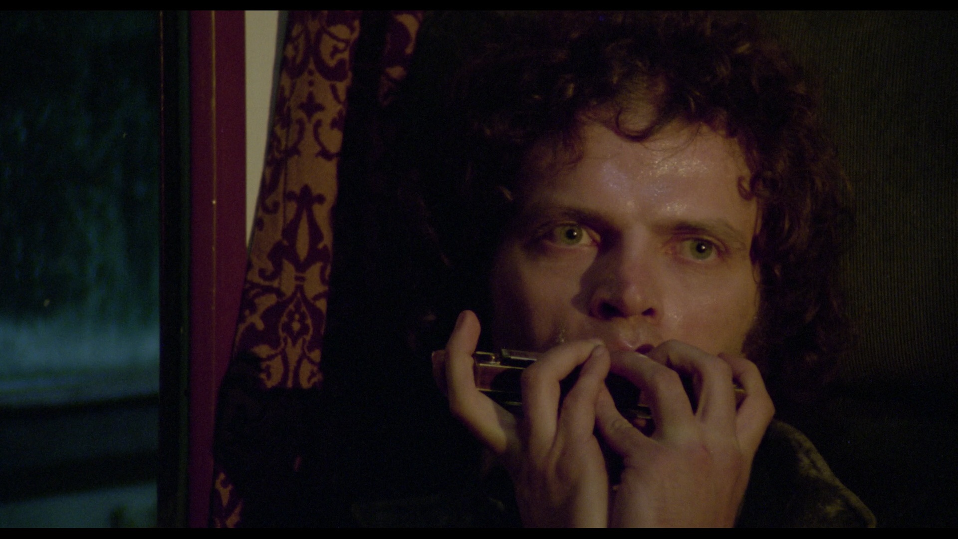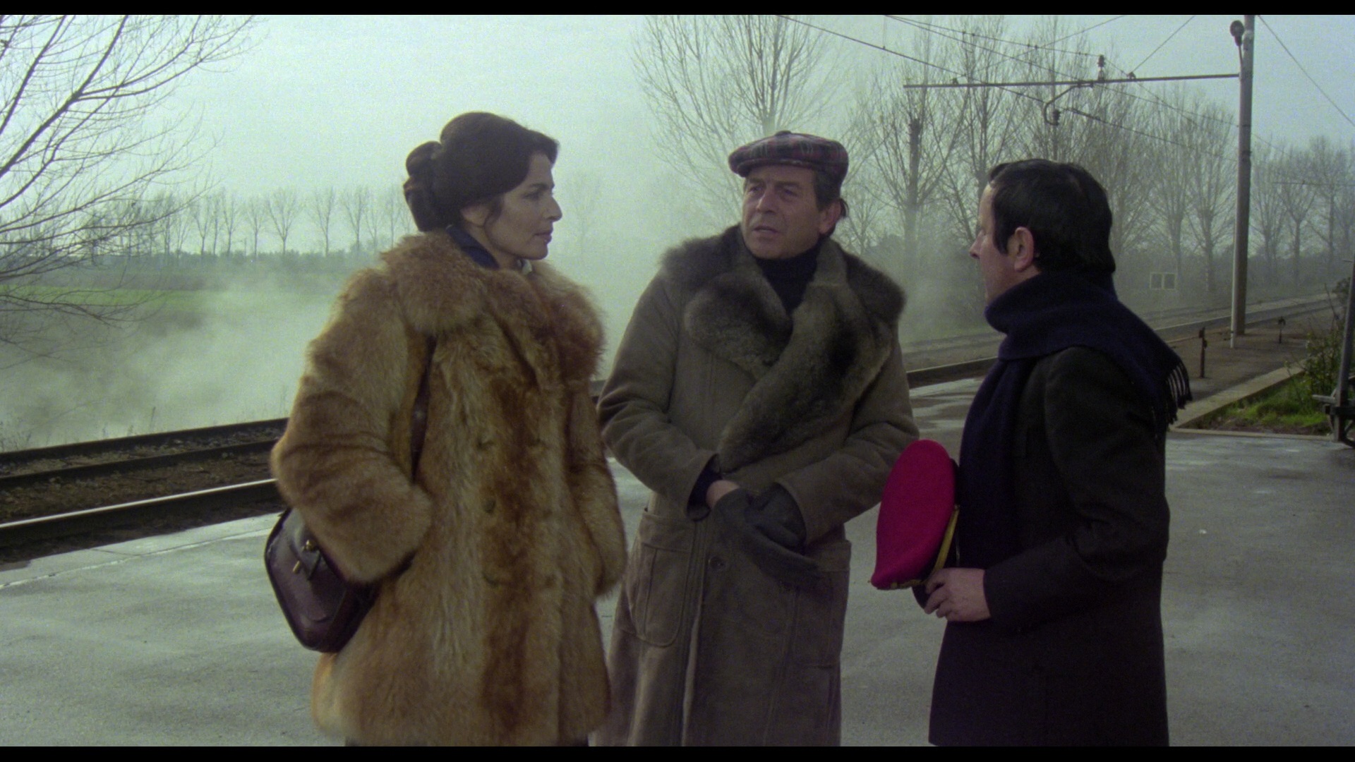 director credit things are pretty smooth sailing. The DTS-HD MA 2.0 English and Italian mono tracks both sound good with subtitles offered in English-translated or SDH options. Both the UHD and Blu-ray options have the English trailer with the film itself coming with two options: an archival Lado commentary with Federico Caddeo (originally done around the time of their Short Night track for French consumption, with the director's usual thorough and excellent recall for all the production details), and a new track by Art Ettinger and Bruce Holecheck who dig into the film's place in rape-revenge cinema, the occasional transgressive streak popping up in Lado's cinema, the role of the Morricone soundtrack, and the backgrounds of all the major participants. On the video extras side, "Hear My Train A-Comin'" (81m13s) is another massive career-spanning interview with Aldo Lado about his key early gigs, his gialli contributions, this film, and pretty much every other industry-related part of his career. In "The Veiled Lady" (21m31s), Méril speaks very positively about the film, the negative reaction of her friends when she took the role, the common commitment she felt from Lado as Dario Argento, her love of the stylized moments in the cinematography, and her own theories on what makes a film and role worthwhile. "Back on the Train" (8m48s) features De Grassi looking back at jumping into this film after working with Ugo Liberatore, his impressions of the "master" Lado, and anecdotes about various little moments from the shoot that helped him build his thug character even if he had to do some crazy non-permitted craziness in public. "Train In Vain" (16m7s) features Miracle talking about her various careers before acting including teaching ballet, the fortuitous meeting in Italy that led to appearing in movies, the gruesome political crime in Nairobi that gave her a final push, and her memories of her fellow cast members and director that involved a bit of a language barrier. Finally the video essay "Night Train Murders and Sadean Women: Power, Pleasure And The Subversion Of Morality" (9m47s) by Kat Ellinger parses out the film's differences from its overt sources and connected concepts from the work of Angela Carter including the complexities of libertine women and their victims.
