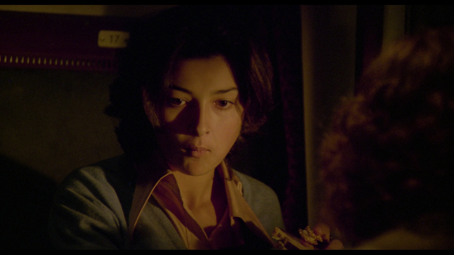 As for the transition to Blu-ray in 2012, one never quite knows what to expect with Italian genre films these days; fortunately it was one of the stronger transfers of its time without the peculiar watercolor blobbiness caused by rampant scanner noise on too many others. The opening bits in Germany have always looked a little dupey, but once the interiors kick in, the film looks extremely sharp and vivid with rich color and detail. The spooky night scenes inside the train car get a significant boost from the stronger and more accurate color rendition, including the eerie use of blue gels. Audio is once again English mono (DTS-HD MA 2.0 this time), with optional subtitles in English, French, and Spanish. Extras are the same as the DVD, albeit this time in HD with appreciably better image quality: the European trailer, the much more lurid and fun American trailer (under the Last Stop title), a pair of radio spots, a gallery of promotional artwork and stills, and a Lado interview, "Riding the Night Train" (14m58s), in which he discusses the film's casting, visual style, and production logistics. In the interim in the U.K., Shameless released it with no pertinent extras (apart from a few trailers) as a standalone title (with the absurd tagline "Whores Aboard," almost up there with their ones for Torso and Ratman) on DVD in 2004 and as part of a three-film slasher set with Killer Nun and Torso. 88 Films inherited it in the U.K. as a Blu-ray in 2015 featuring a comparable transfer to the Blue Underground with extras including an Irene Miracle interview (21m38s), a "Further Adventures in Italy" featurette (3m48s), and the English and Italian trailers. In 2025, 88 Films upgraded the film UHD and Blu-ray (not available for appraisal yet) featuring a commentary by Eugenio Ercolani and Marcus Stiglegger, a Lado "Class and Carriage Violence" interview, "A Lady Above Suspicion" with Méril, an "All About Lado" career retrospective, "The Most Heinous of Crimes - A Brief Introduction to the Italian Rape and Revenge Film," a Mike Foster video essay called "A Train of Thought," "On the Brink of Anarchy - The Coalescence of Sex and Power in Night Train Murders" by Andrew