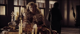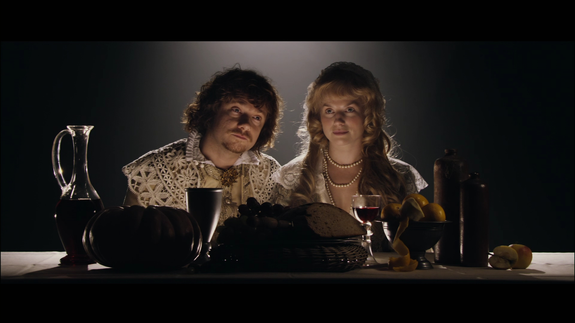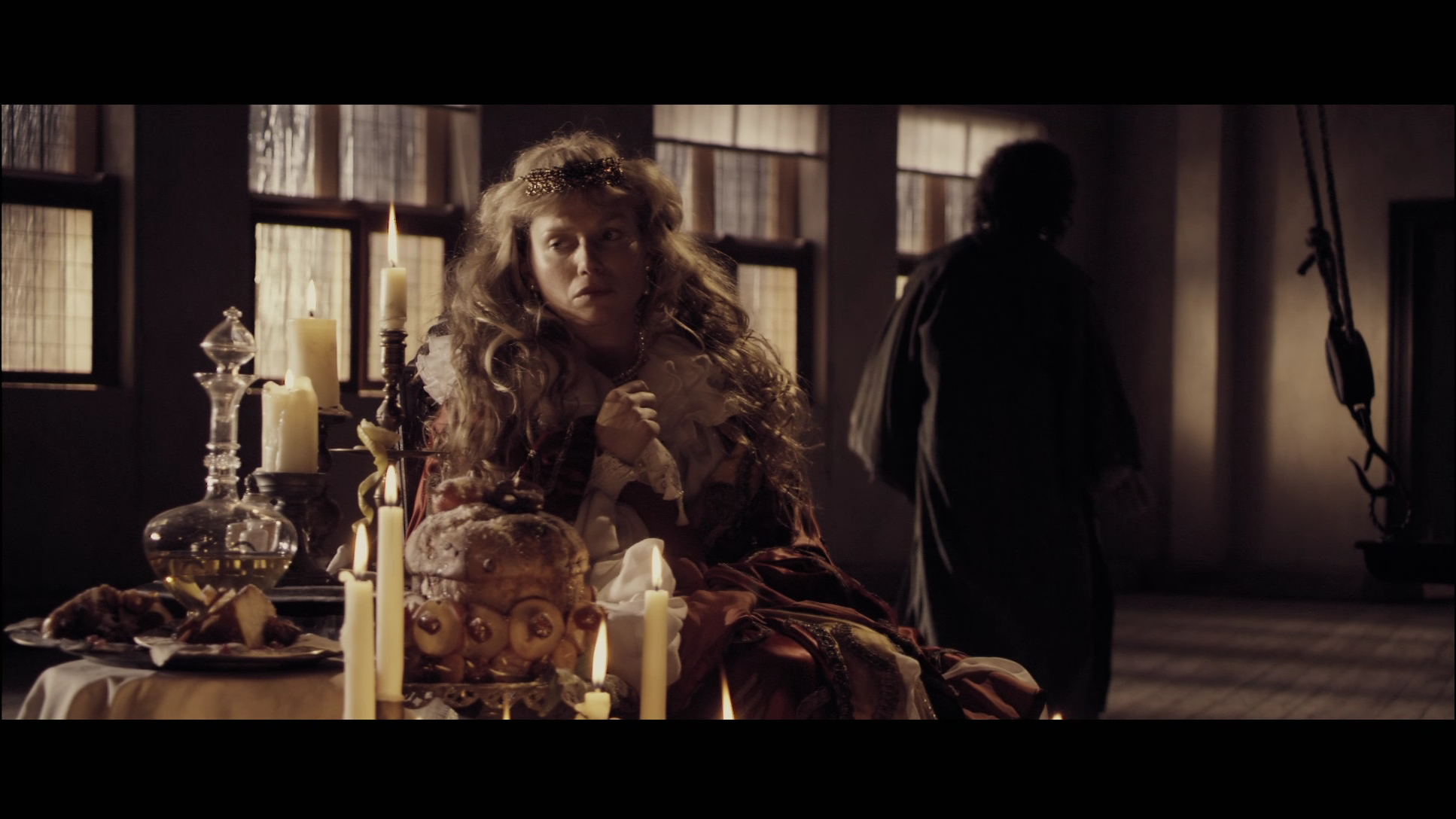 Since most viewers will probably never have a chance to see this in a theater, the DVD releases were the first available option for most viewers and make for an adequate alternative. The anamorphic transfer used for the releases looks satisfying throughout; some digital distortion is evident in the opening and closing credits, but overall the powerful chiaroscuro lighting effects are captured beautifully. The powerful 5.1 surround mix (in English) is subtle but effective as well, often echoing the unnerving ambient surround effects found in Cook. (A 5.1 Russian-dubbed version is also included on the Paradise disc along with optional Russian subtitles). The two-disc US release sweetens the deal with a second disc containing Rembrandt J’accuse, an ambitious making-of-via-symbolic-rumination on the themes of the film with the director and cast expounding further upon its provocative key ideas.