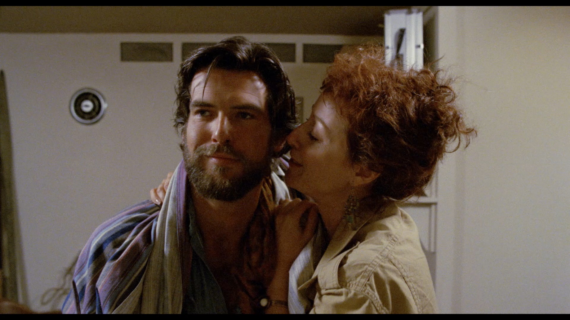 most of Brosnan's nude scene in earlier MGM masters. The DTS-HD 5.0 English mix here is also a nice step up, restoring the aggressive presentation almost no one got to hear in theaters and sounding heftier than the 2.0 stereo version in past releases. As usual, optional English SDH subtitles are included. A new commentary features McTiernan and Action Speaks Louder: Violence, Spectacle, and the American Action Movie author Eric Lichtenfeld is obviously essential as it features the filmmaker going into detail about how he got his first feature gig, what he went through with the screenplay, how he worked with Kastner, and what creative decisions he made along the way. Occasionally he'll also just dismiss a potentially rich question which can be either amusing or frustrating, depending what you expect to hear. The Down and Conti interviews are carried over here, while the great new "Delightful Alchemy" (8m57s) has Brosnan recalling working with McTiernan and his "Celtic darkness" fresh out of the AFI, his positive response to the script, the ties to producer Elliott Kastner and 007, the shooting in L.A. including tossing a guy off a roof in Century City, and his pleasant surprise at revisiting it today. In "A Fringe Genre Exercise" (12m36s), Kim Newman covers the flamboyant reinventions of the horror genre around the mid-'80s, the notable aspects of this film, McTiernan's place in the era's cinematic pantheon, and the ways this does or doesn't qualify as a horror film. Also included are radio spot and trailer plus an 8m58s gallery, while buying it directly from the label also gets you a rigid slipcase with new art by Ilan Sheady of Uncle Frank Productions, an illustrated booklet with essays by Alan Jones, Amanda Reyes, Michael Doyle and Andrew Llewellyn, and six art cards.