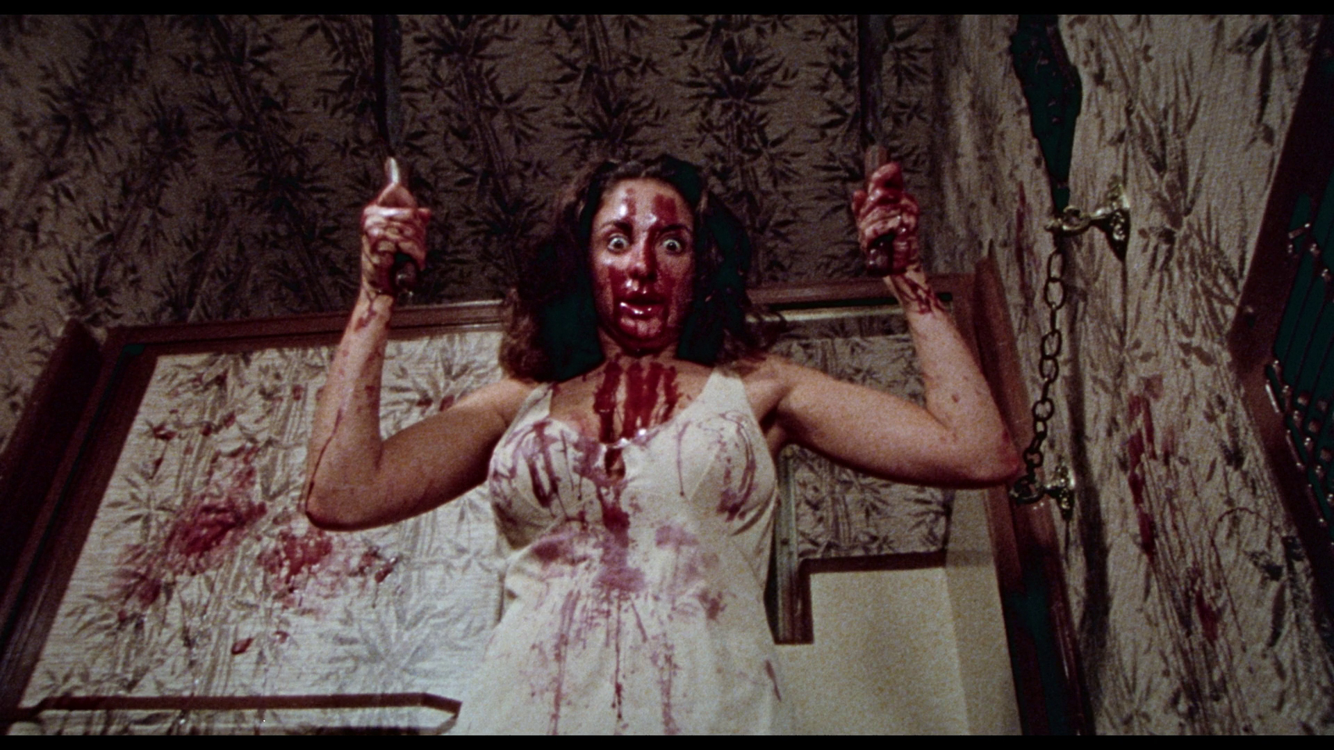 In 2017, Vinegar Syndrome gave the title a revisit as a dual-format Blu-ray and DVD release, and you'll want to keep both discs handy as they aren't quite the same. The Blu-ray sports a new 1080p presentation of the theatrical version, and as an opening disclaimer notes, the film was originally shot on 16mm with reshoots on 35mm so the final edited product is a hybrid between the two formats with the inevitable inconsistencies in grain structure and color resolution evident here. The appearance here looks pretty