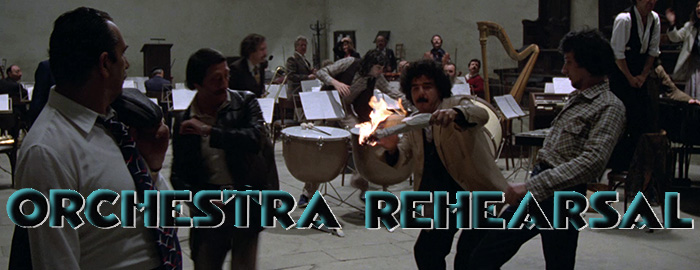 The least seen and most challenging of the four theatrical feature films by Federico Fellini released in the 1970s, Orchestra Rehearsal finds the maestro at his most abstract. Gone is the voluptuous indulgence of his two prior tapestries of life, Amarcord and Roma; here the action is mainly confined to one building, an austere chapel converted into a music auditorium.