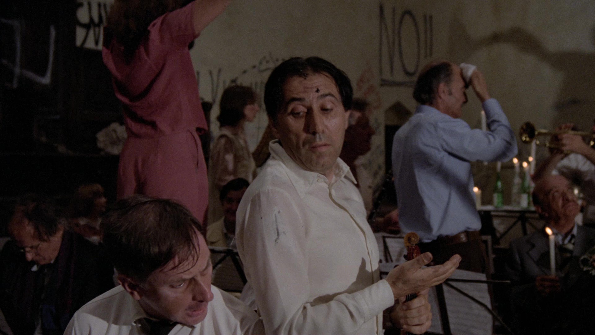 Since none of the characters have names, nor do they receive any sort of development, we're obviously in pure metaphorical territory here that's less interested in an accurate portrayal of orchestra dynamics and more in the way self-interest can sabotage any sort of organization set up by human beings. The presence of union reps early in the proceedings inside the oratory is an indication of how artistic expression often butts heads with the rules required to pull it off, something that becomes very clear during the memorable finale when visuals and music harmonize beautifully for a few minutes. This film is often cited as a factor in Fellini's perceived decline, with critics trying to compare it directly to Amarcord and its immediate predecessor, the financially disappointing but astonishing Casanova,