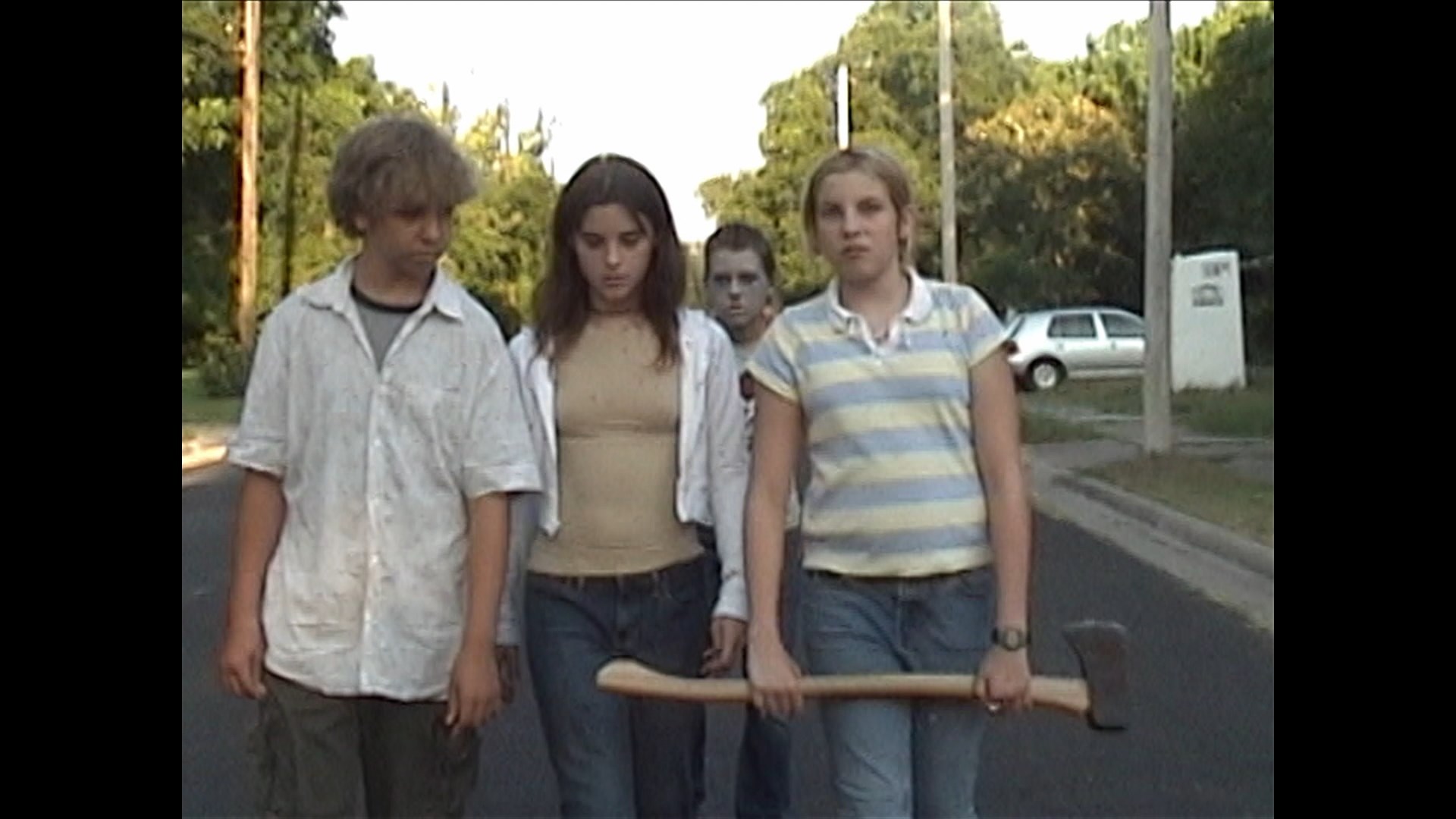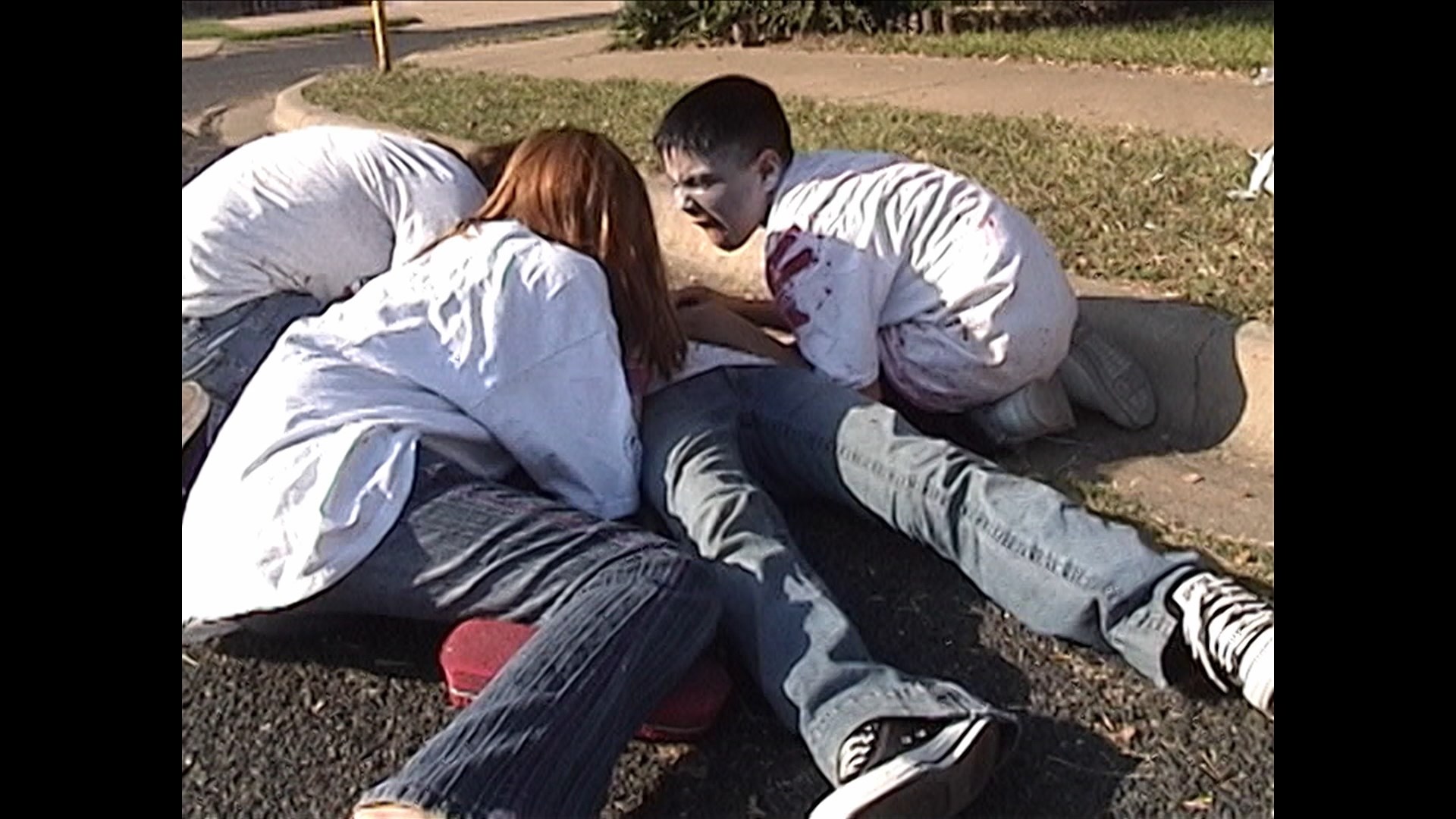 DV limitations obviously keep this well within the SOV realm (complete with the usual erratic sound recording at times), it's one heck of a job for a filmmaker who, as AGFA amusingly points out, wasn't even old enough to drive. There's definitely a "let's learn as we go along" spirit here (something confirmed in the bonus features) that keeps you on your toes, and if you've watched enough of these things, it's pretty amusing that a pre-teen could pull off a more accomplished SOV zombie movie than quite a few folks twice her age. For the gore crowd you do get some of the red stuff here (including a shockingly well-executed decapitation gag near the end) as well as some implied gut munching (including some hilarious sound effects), plus some zombie puking for good measure. On top of that you can clearly see a couple of the pint-sized zombies about to break character in a few shots, which somehow adds to the fun. Extra points for not going with the trite twist ending you might expect from that dream plot element, too.