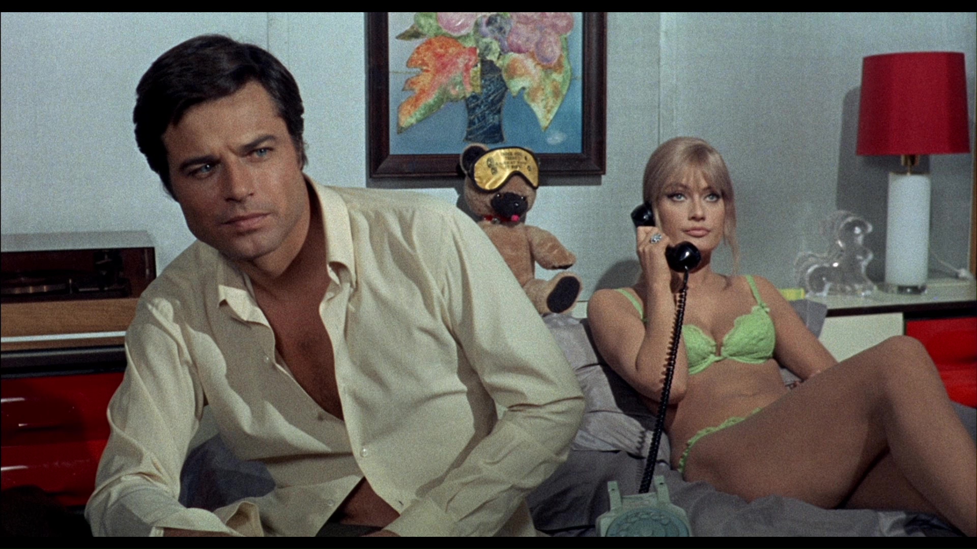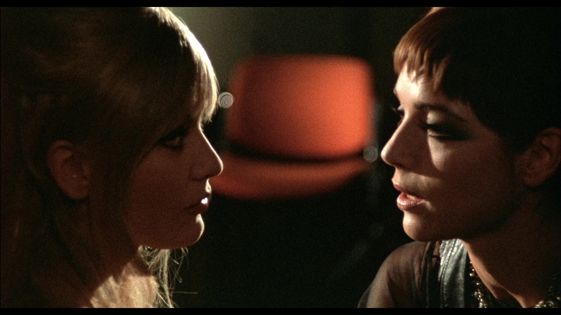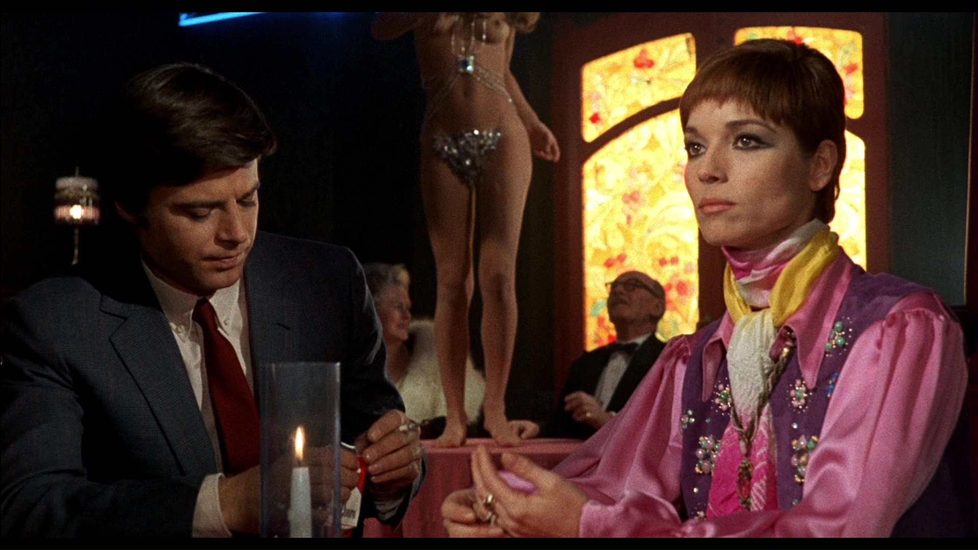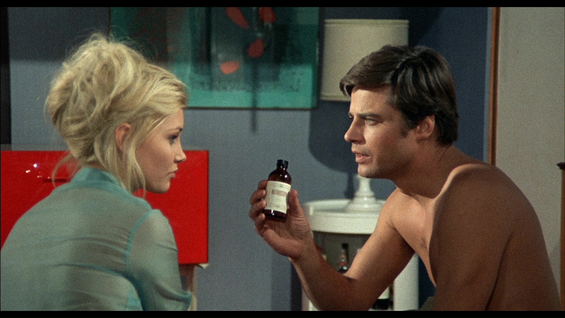 different with a softer, less contrasty veneer (see frame grab comparison #5 below), and the vibrant reds and golds of the original color scheme have been thankfully left intact. In a nice touch, not only are the English and Italian audio options present (DTS-HD MA mono) with optional English (translated) subtitles, but the language choice from the menu plays the film with its respective title sequences (as One on Top of the Other or Una sull'altra). The audio on the English track is much clearer and punchier, but the Italian is functional for what it is. A video interview with Sorel, "On Death Row" (29m47s), covers his glory days in European co-productions (with Italy as the ultimate "meal ticket"), his career-shifting role for Visconti, the limited confines of "erotic cinema" in Italian films at the time, Fulci's penchant for giving everyone nicknames, the pleasures of driving a Corvette all over San Francisco, and more. Probably recorded right before her death, "The Last Diva" (9m58s) features Martinelli discussing her distaste for horror films, her attraction to the basic crime story of this film, and her memorable glass table scene with Mell. Always a poetic analyzer of Fulci cinema, Stephen Thrower turns up for a new featurette (38m22s) covering Fulci's genre-hopping tendencies leading up to this film, the nascent state of the giallo at the time, this film's departure from the subgenre's strict definitions, the influence of Vertigo, the role of producer Edmondo Amati, the peculiar decision to set the original script in Louisiana, the contributions of its stars with a nice focus on Mell, and the possible real-life influence of the case of death row inmate Caryl Chessman. A fuzzy English-language trailer is also included along with the obligatory Mondo Macabro promo reel.