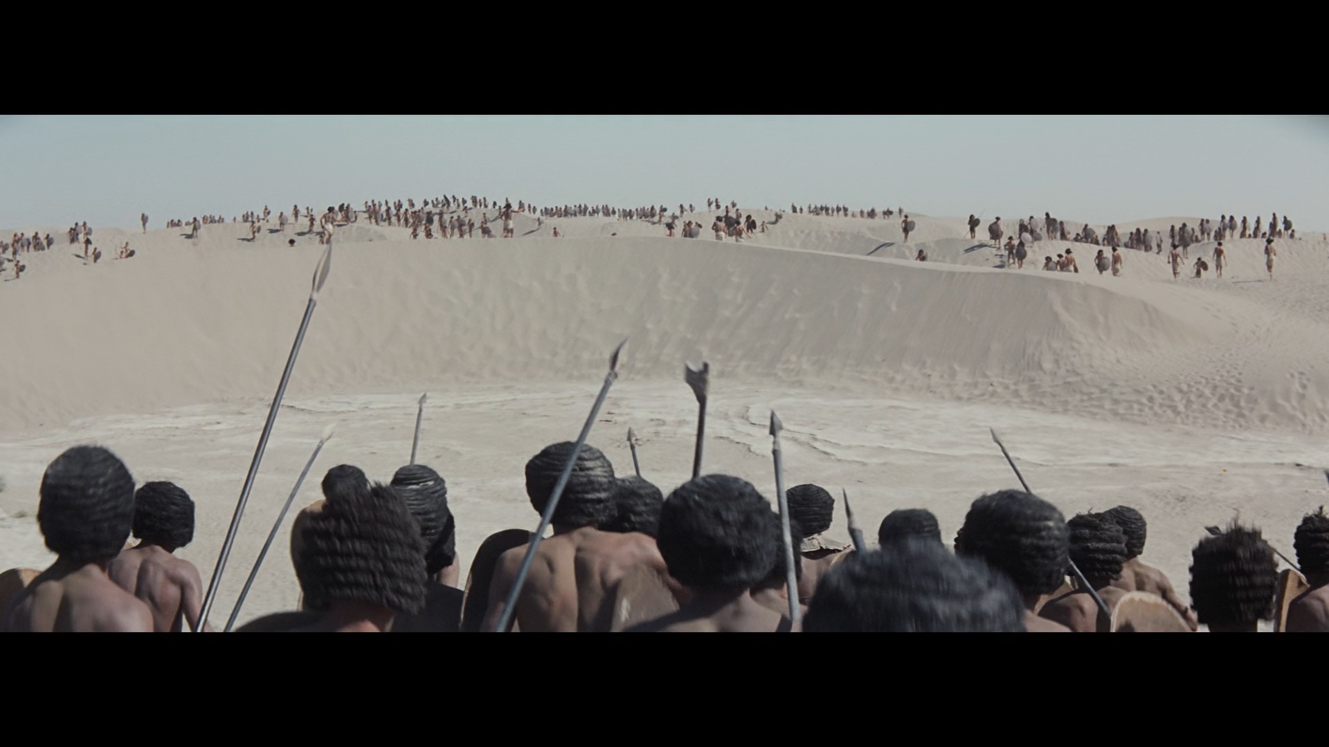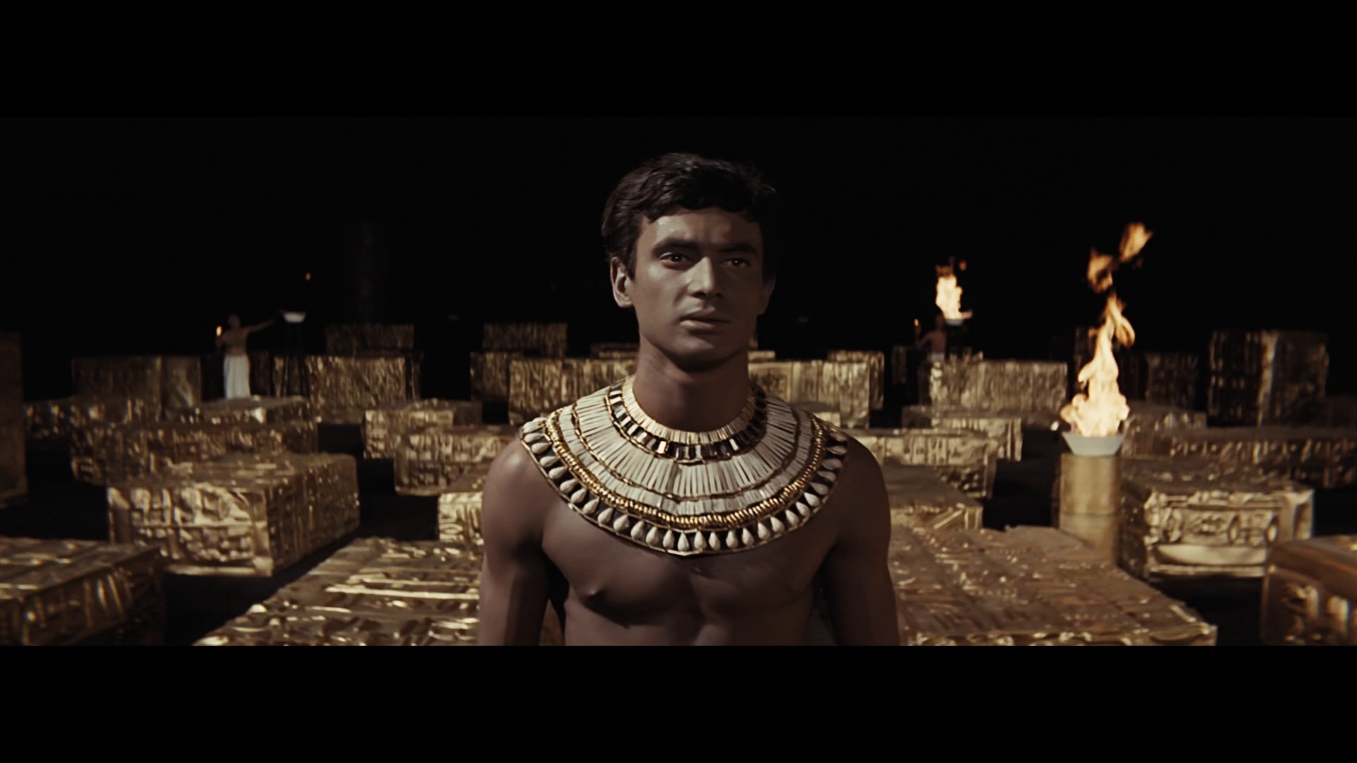 In 2024, Second Run bowed the film on U.K. Blu-ray with a much appreciated special edition; as expected, it comes from the same restoration and looks identical. Interestingly, the Polish release had DTS-HD and Dolby Digital 5.1 audio options, both of which were entirely front loaded with no channel separation; the Second Run has a DTS-HD MA 2.0 mono track and sounds the same. The optional English subtitles are also improved over the Polish release. Some tech listings for the film claim it was originally given a four-track mix for initial engagements, but if so, that doesn't appear to exist anymore. As for extras, "Faraon – Afterword" (71m18s) an expansive and in-depth discussion of the film by the University of Warsaw's Michał Oleszczyk untangling the many layers of the film, its ethnic depictions, its historical basis and creative liberties, and its relationship to its source novel. Hats off to him for sitting at a desk in front of a microphone uninterrupted for the length of a feature film without taking a break, and it's a great, illuminating chat that only makes sense if watch it after the film. "Kawalerowicz in the Desert" (2m8s) is a black-and-white 1964 archival newsreel excerpt on the making of the film on location in Uzbekistan and featuring some really swingin' music, followed by a (weirdly unsubtitled) new trailer. There's also an easily accessible Easter egg on the main menu screen pertaining to the film's U.S. release. Also included is a 24-page booklet with a thorough, excellent essay by film historian and producer Michael Brooke about the source novel, the film's place in the Polish "superprodukcja,"
