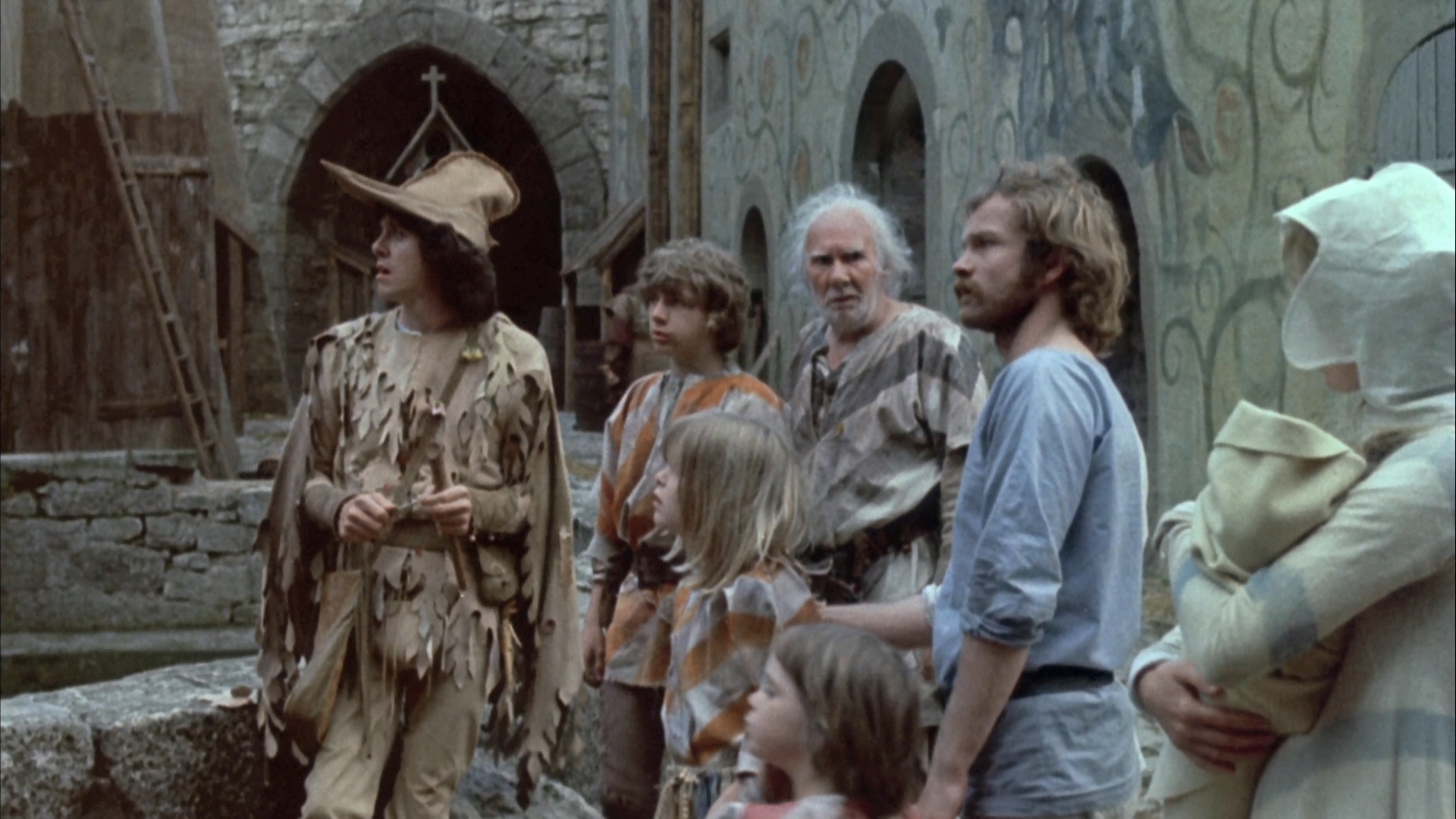 After the rousing success of his lavish musical fairy tale Donkey Skin, director Jacques Demy, helmer of the beloved The Umbrellas of Cherbourg, decided to take another crack at children's fantasy, this time in English. The Pied Piper, his adaptation of one of the most disturbing fairy tales pulls no punches with the source material, depicting a small medieval German town of Hamelin, the threat of a nearby plague terrifies the populace, particularly the dominant forces of the Catholic church. A traveling troupe of actors arrives at the barricaded town, which allows them in only after one of their party, a vagabond piper (Donovan), revives the mayor's ailing daughter, Lisa (Harrison), with a song heard through her bedroom window. However, their troubles are only beginning as the sniveling burgomaster (Pleasence) and his corrupt and irresponsible military-aspiring son Franz (Hurt) perform underhanded deals with the church to establish a papal-sanctioned war and a completely indulgent church based out of the town. On the other side of the moral spectrum, alchemist Melius (Hordern) and his artistic, crippled young assistant, Gavin (Oliver!'s Wild), become friendly with the actors. Gavin is nursing a crush on Lisa, who, despite having yet to reach adolescence, is engaged to marry Franz. When Lisa's doomed wedding arrives and the eventual influx of infected rats arrives, the powers that be arrange an unusual bargain with the piper which, as all fairy tale lovers know, is destined to end on a very melancholy note.