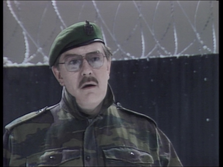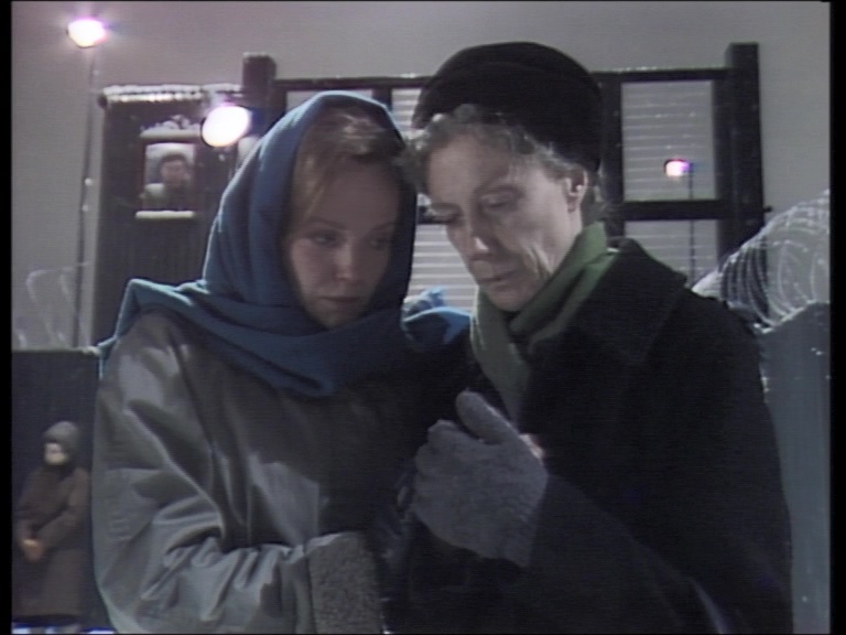 Kicking off disc four, it took 22 years for Pinter's The Hothouse (1982, 111m26s) to see the light of day in any form. A look at the toxic combination of totalitarianism and incompetence, it focuses on a mental treatment center where dissidents are kept out of sight and remain at the behest of the state who can keep them from ever breathing free air again. Pure speculative nightmare when it was written, the piece had eerie parallels to reality by the time it hit the air and actually feels mild now; that's not to its benefit as it hammers a fairly obvious point home repeatedly for nearly two hours as it veers into territory familiar from Terry Gilliam's Brazil. Of great historical value though, it is still worth a look for its four-person cast including Angela Pleasence (From Beyond the Grave) and Edward de Souza (Hammer's Phantom of the Opera) as well as its sheer eerie prediction of where the world was heading. Much more concise and immediately chilling is Mountain Language (1988, 20m32s), a creepy little snapshot of an oppressive government (led by an always effective Michael Gambon) that overreacts when a concerned wife (Miranda Richardson) and mother (Eileen Atkins) come looking for a man being held captive in a realm of seemingly endless snow and barbed wire. Even forbidden to speak their own language, they find themselves up against forces far more nightmarish than they can handle. Inspired by Pinter's recent journey to Turkey to gain ammunition against the persecution of so-called dangerous writers, it's a little tour de force for the talent involved with a particularly nasty punchline at the end.