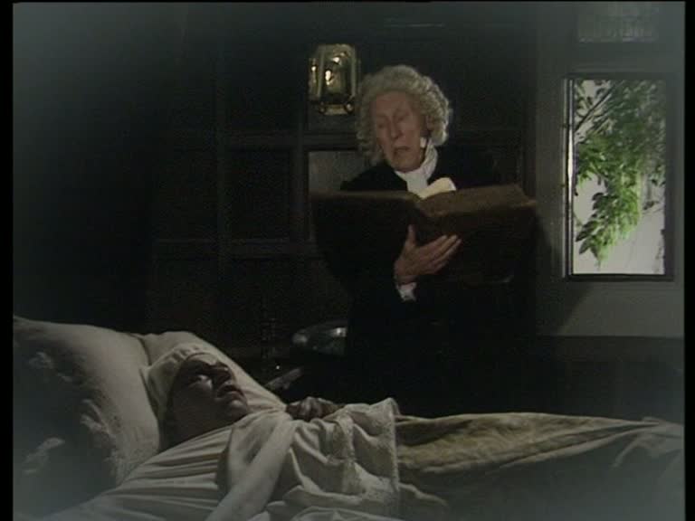 Originally broadcast in December of 1986 and very difficult to see ever since, the program features five James tales, two of them adapted previously for the Christmas series. Each runs just under fifteen minutes and is told by the wonderful Robert Powell, whose past roster ranges from Amicus horror (Asylum) to biblical miniseries (Jesus of Nazareth) with a detour into Ken Russell territory in between (Mahler, Tommy). Here he sits in his university study, recalling the Cambridge setting where James himself originated his tales by telling them around Christmastime, with a handful of props kicking off each story (which Powell tells very well and seemingly from memory). In "The Mezzotint," the title object (a modest engraving of a manor house) displays a black tint in the corner resembling a figure. However, over time this black figure seems to crawl to the house, which intrigues the new owner, a man named Williams. Using the clue of a torn label on the back of the drawing, he decides to uncover what turns out to be a monstrous secret. In "The Ash-Tree," one of the previous BBC titles, a witch condemned to death inflicts a multi-generational horror upon the ash tree at the hall of her accuser, Sir Matthew. The latest heir arrives to move into the house, only to find something chilling invading his room at night.
