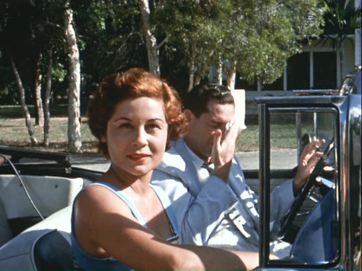 started off her bizarre, truly unique career with bare-assed panache. It comes packed with the all the staples you'd expect (volleyball players with one team wearing pants to obstruct frontal nudity, bare-butt archery, gals lounging in swimming pools on inflatable rafts with their legs oh-so-strategically placed, etc.). Lensed in very bright color, it's an utterly ridiculous robbery caper shoehorned into a nudie-cutie template as robbers Steve Martin (Bauer) (Doris must've just been watching the original Godzilla) and Duke (Conrad) wind up hiding at a Miami naturist resort on their way to Cuba, with a buxom hostage, Dorothy Courtney (Carlos), in tow. Duke hides out in their bungalow while Steve and Dorothy go au naturel to blend in with the locals, and soon their escape plans take a not-too-surprising turn. It's all rather sweet and innocent with the heavy amount of bare bosoms and derrieres blending in with the scenery after a few minutes, and Doris' fractured framing is kept to a minimum here. The cast is mostly a bunch of no-names, but nudist movie regular Dolores Carlos also popped up in favorites like Pagan Island, H.G. Lewis' A Taste of Blood, and the immortal The Beast That Killed Women.