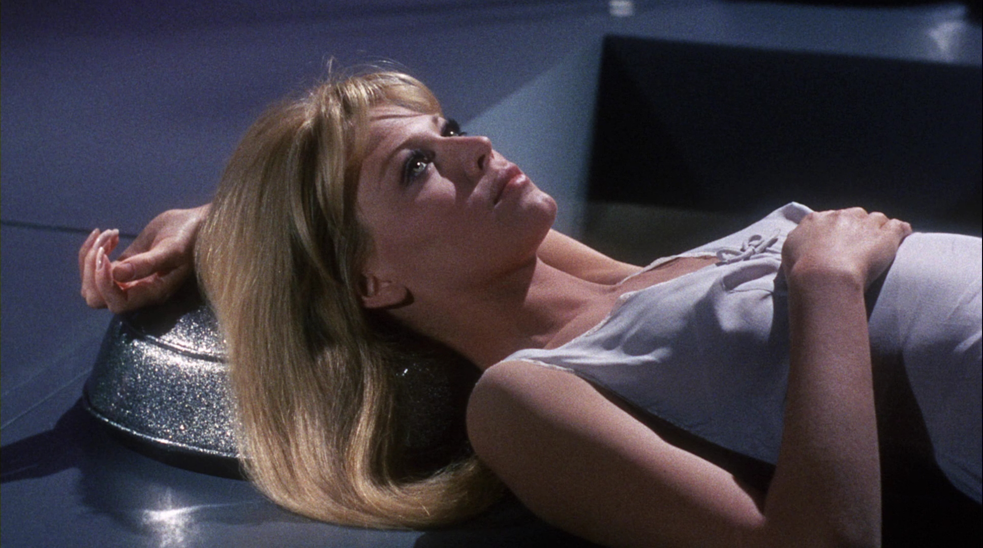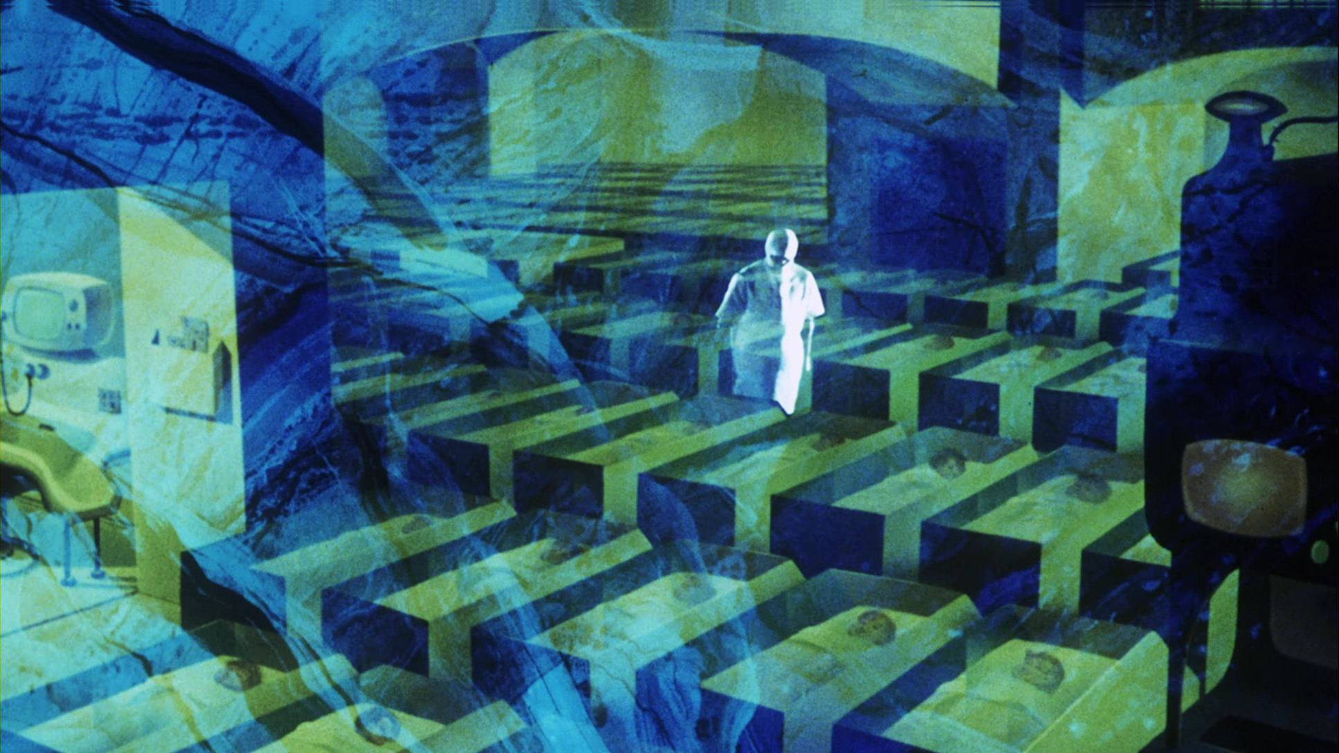 The world depicted here is an unusual one, with the globe solidified into two opposing political forces and petty crime a thing of the past. The constant references to the "matrix" created for the hero will definitely remind viewers of a certain later sci-fi film franchise, and the comparison is more apt than you might think. The themes of virtual versus actual consciousness and the symbiotic relationship between technology and biology are all in place here, concerns that would become far more common as special effects caught up to filmmakers' ambitions. If that sounds too cerebral, well, don't worry; there's a lot of entertainment value here, too, including some wild animated sequences (courtesy of Hanna-Barbera!) at regular intervals with lots of bright, splashy colors and superimpositions floating all over the screen. The cinematic drug culture was at its height when this came out, so no doubt Castle was hoping to attract some of the same turned-on viewers who were flocking to 2001: A Space Odyssey the same year. That didn't happen, of course, but seen today this is a fascinating, compelling curiosity with an appealing mixture of '60s pop culture attitude and tantalizing sci-fi concepts. Oh, and for you film score buffs there's a trippy score by the great Lalo Schifrin (Enter the Dragon), too.