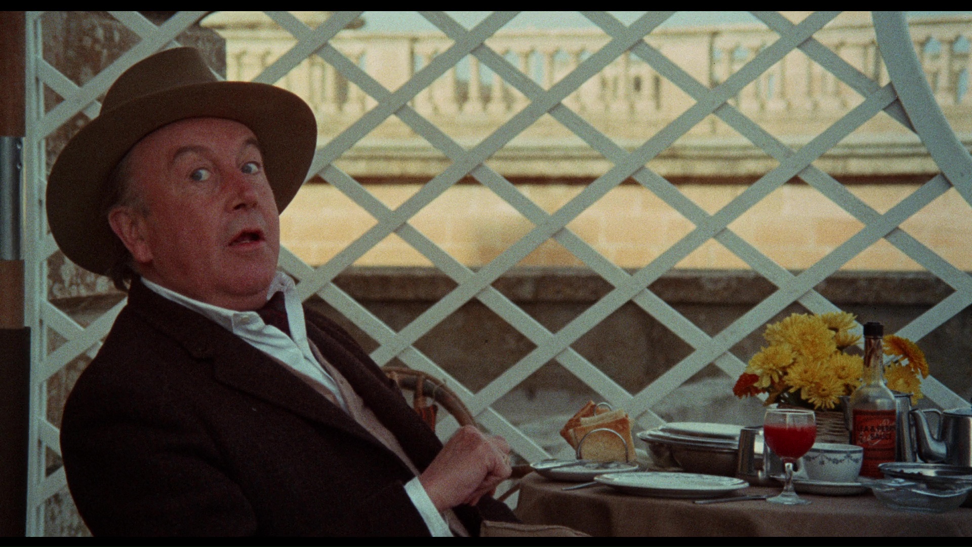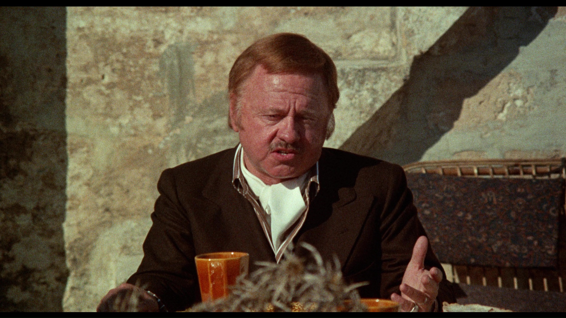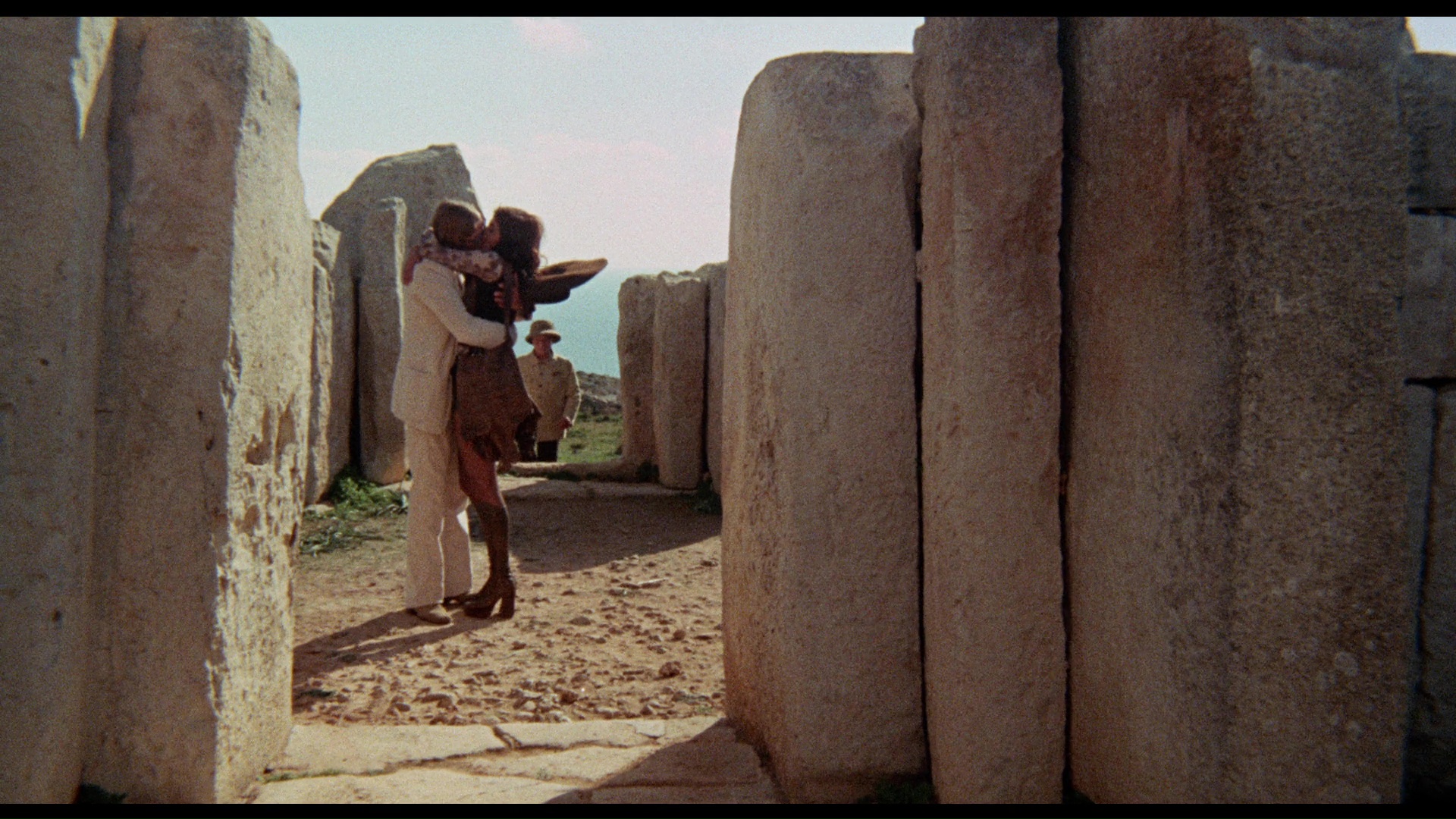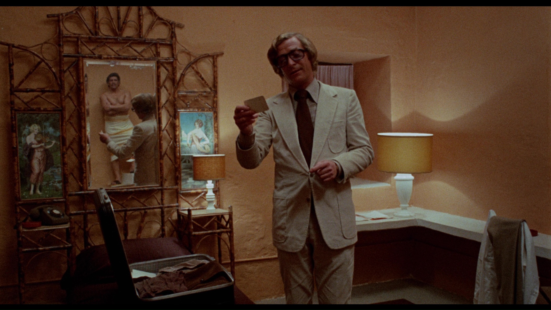 more textured than the DVD, nicely replicating the appearance of an early '70s print. In a nice touch, the original United Artists Transamerica logo has been retained (a very rare beast on home video), along with the BBFC card. The LPCM English mono audio sounds good given the very basic nature of the mix, which features a sparse score by Beatles producer George Martin (who provided a much more dynamic score for Live and Let Die one year later). The release also comes with four new featurettes, the first with Hodges (17m36s) chatting about how the project came about as a sort of covert statement about fascism(!), was always intended to feature Rooney, and had some stylistic ties to one of his earlier TV films, Rumour. Next up, cinematographer Ousama Rawi has a chat (9m15s) about his fondness for this film as his big break (he later shot such films as Zulu Dawn and the underrated The Black Windmill) and an opportunity to explore the visual possibilities of Malta. Later a director of several James Bond Films, editor John Glen has a shorter interview (4m59s) about his longstanding friendship with Caine and the challenge of keeping the film buoyant after a major character death. Finally Tony Klinger, son of producer Michael Klinger, appears for a 6m7s recollection of the difficulty of selling the project in the wake of its more famous predecessor and its unusual look relying heavily on gold and beige. Also included are four separate, rather large image galleries (promotional art and tons of production photos) and a fun theatrical trailer hosted by Stander. The first pressing of the disc (which comes packaged with a new cover design by Nathanael Marsh) also features liner notes booklet essay by Alexandra Heller-Nicholas.