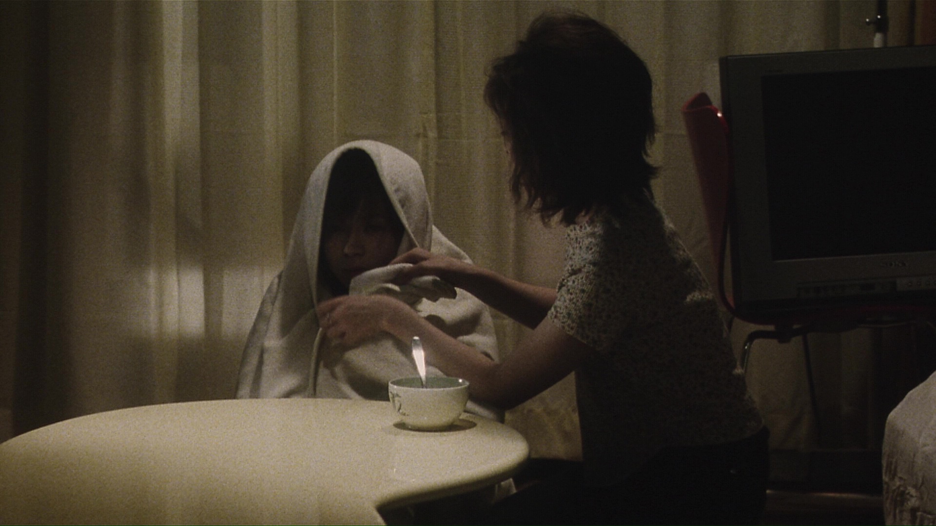 Pulse also happens to be one of the most intentionally dark, murky-looking films you'll see this side of The Element of Crime, with a very limited color palette and a grainy texture that's defeated more than a handful of DVD releases over the years. The dual-format Arrow release on Blu-ray and DVD in the U.S. and U.K. offers an accurate replication of very tricky source material, which is pretty much designed to have reviewers coming up with phrases like "looks like it was shot through dirty sink water." The natural grain structure has been left intact, and the darkest scenes at least have more readability than the SD predecessors. The LPCM Japanese stereo audio sounds just fine given how much of the film is just dialogue or near silence, and the optional English subtitles are solid.
