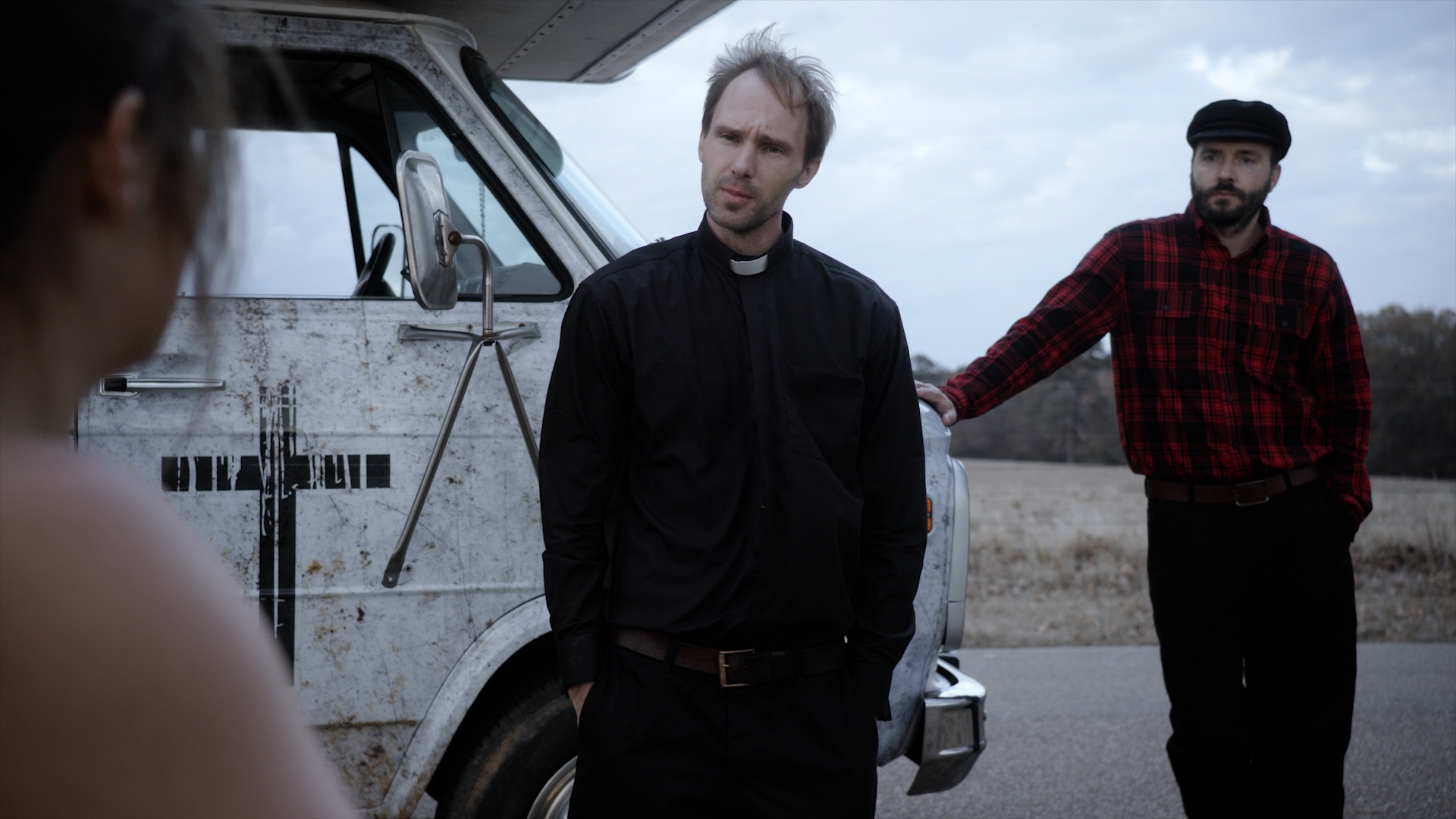 When he's threatened at knifepoint and fails to stop a woman from burgling the family home, young Vincent blames himself for the financial ruin of his porn novelist father. Three weeks later, he and brother Michael witness their dad firing a bullet into his mouth, sending Vincent on a lifelong spiral into religious mania. Ejected from the church years later after becoming a man of the cloth, Vincent (Cairns) has set up a confessional on wheels that he takes around the South with Michael (Albright) helping him recruit parishioners for donations. Unfortunately Vincent also gets triggered by anyone who confesses to theft and believes he can save their souls by murdering them. Things get more complicated with the arrival of Mary-Francis (Robinson), a peppy serial killer who decides to join their mission and soon locks horns with Michael -- who decides he wants to get a life of his own after falling for local Ruby (Crim). The stage is set for bloodshed and tragedy, but there are still more dark secrets left to be revealed that will test the brothers' bond more than ever.