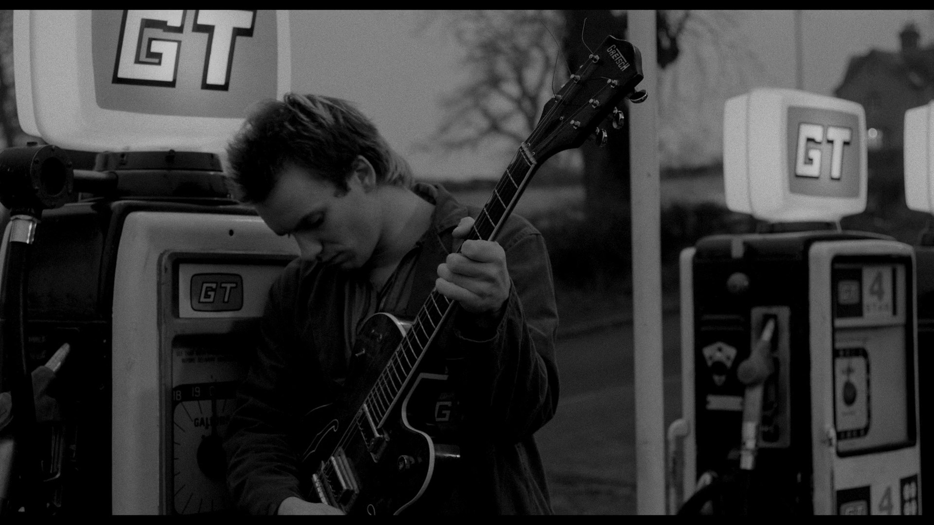 to its core, Radio On is a fascinating, black-and-white intersection between the beautiful monochrome road films of New German Cinema (right down to retaining Wim Wenders as an associate producer here, plus his camera operator Martin Schafer as cinematographer and funding from Wenders' Road Movies Filmproduktion) and the hip, modernist strain of indie film that would become a mainstay throughout the '80s (and an explosion in the '90s). That latter aspect is most obvious in its incredible soundtrack, which opens with David Bowie's hybrid English-German recording of "Heroes" and offers a slate of great new wave, electronic, and punk offerings from Kraftwerk, Devo, Robert Fripp, Wreckless Eric, Lene Lovich, and Ian Dury & The Blockheads -- not to mention some acoustic strumming and singing from Sting, whose first hits with The Police had just landed.