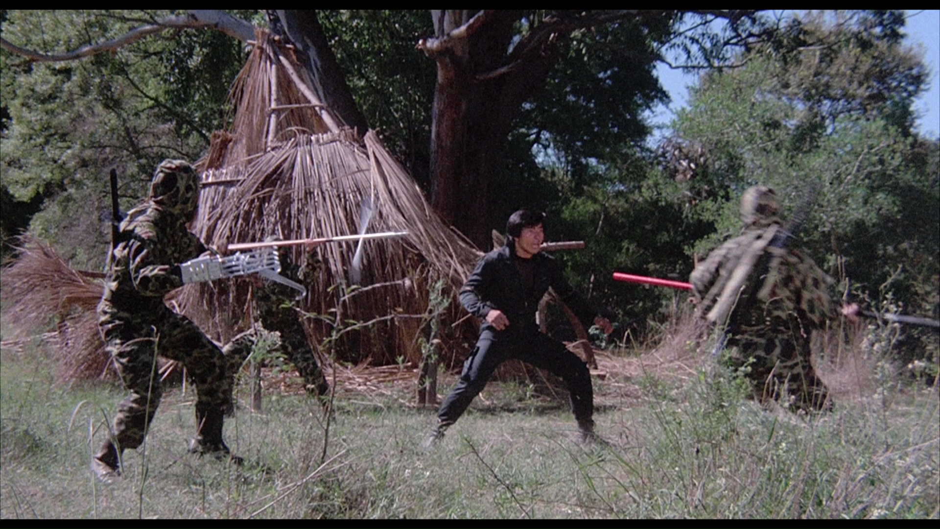 Presumably due to the trimming forced on Pray for Death to avoid an X rating, this film drops the blood quotient down considerably but still manages to show plenty of villains getting punctured, blown up, or shot. Kosugi's a blast to watch as always (and as usual has virtually no chemistry with his leading lady), while the novelty of seeing him toting around a gun and sporting evening wear gives the film a different feel than its predecessors. On top of that you get a gloriously goofy soundtrack complete with a score by none other than giallo and action film specialist Stelvio Cipriani and a gloriously overwrought (uncredited) theme song that deserves a fan following all on its own.