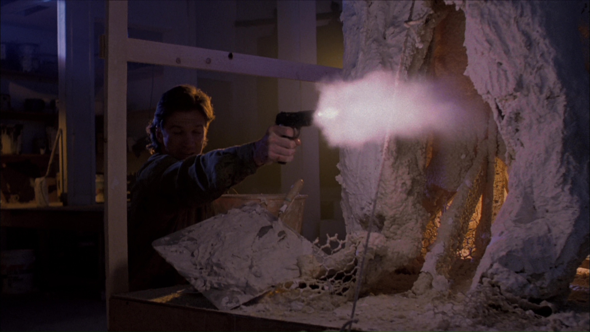 Few viewers will award this one major points in the story department since the killer's identity doesn't come as much of a shock, but it's fun to see Sharkey strut his stuff in a neo-noir giallo riff with lots of stylish murder scenes and surprisingly intense sex scenes, with frequent Corman skin provider Maria Ford doing much of the skin honors here. Chiklis doesn't get much to do besides run his mouth while wearing a Celtics cap, but it's fun to speculate how this might have paved to way to his much more rewarding roles on TV in The Shield, The Commish, and Gotham. The serviceable, synthy music score comes courtesy of Terry Plumeri, who's probably best known for doing Scarecrows just before this.